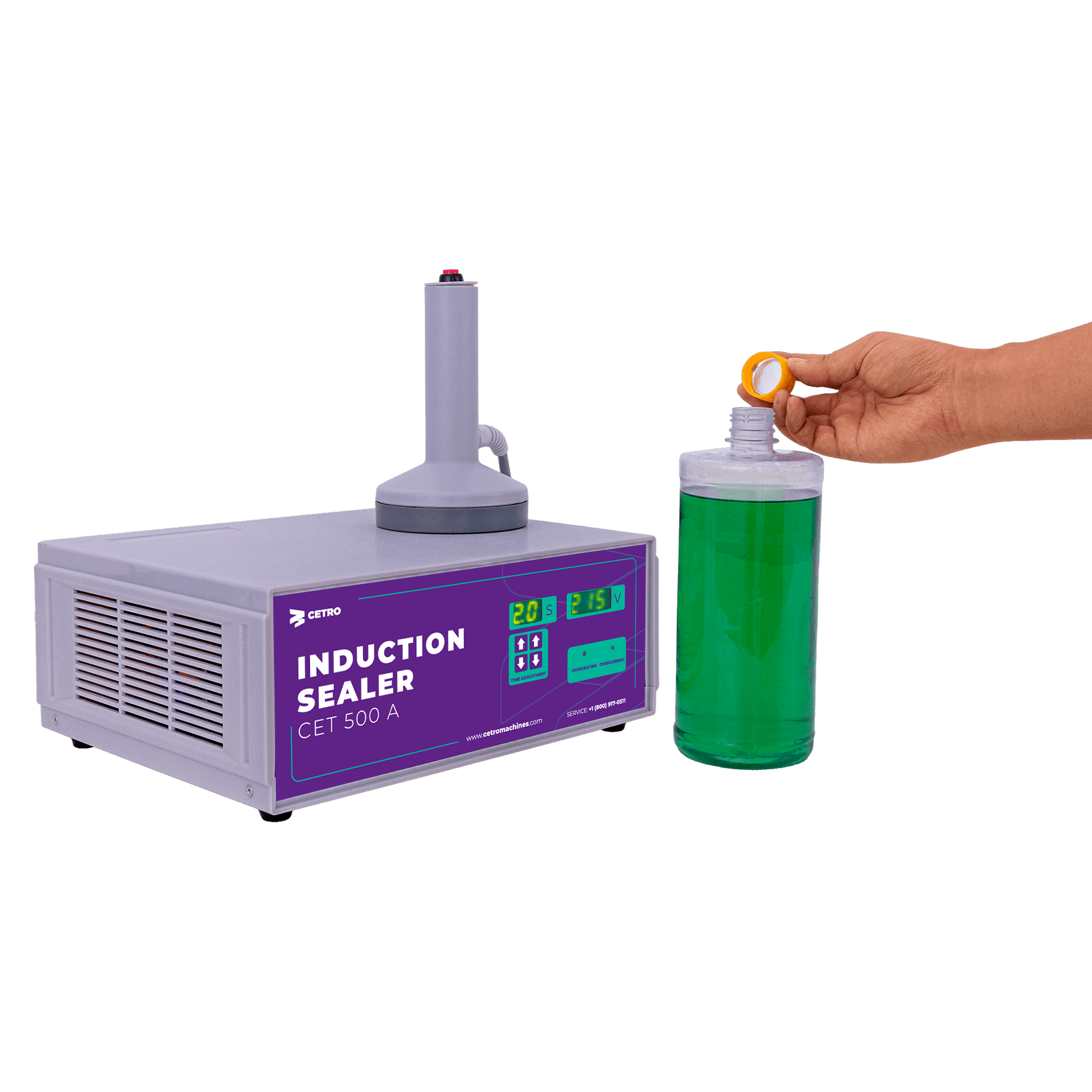 Cetro Manual Induction Sealer Machine CMSM I-100 T uses the electric magnetic induction principle to produce high heat to attach the seal or liner made of plastic/aluminum or paper/aluminum to the mouth of the packaging.