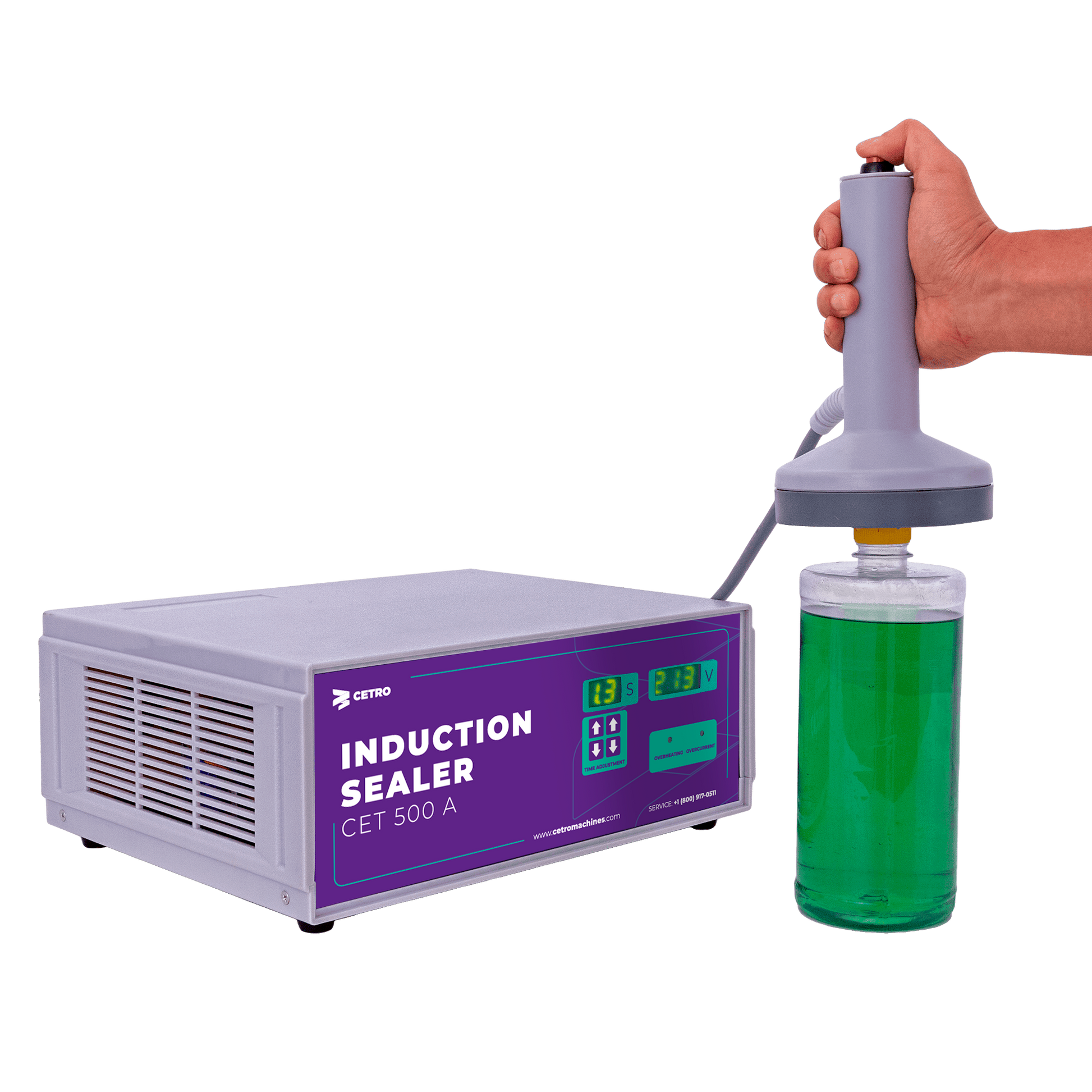Cetro Manual Induction Sealer Machine CMSM I-100 T can seal bottles and packages hermetically through the magnetic induction principle that produces heat to perfectly attach seals and liners into packaging.