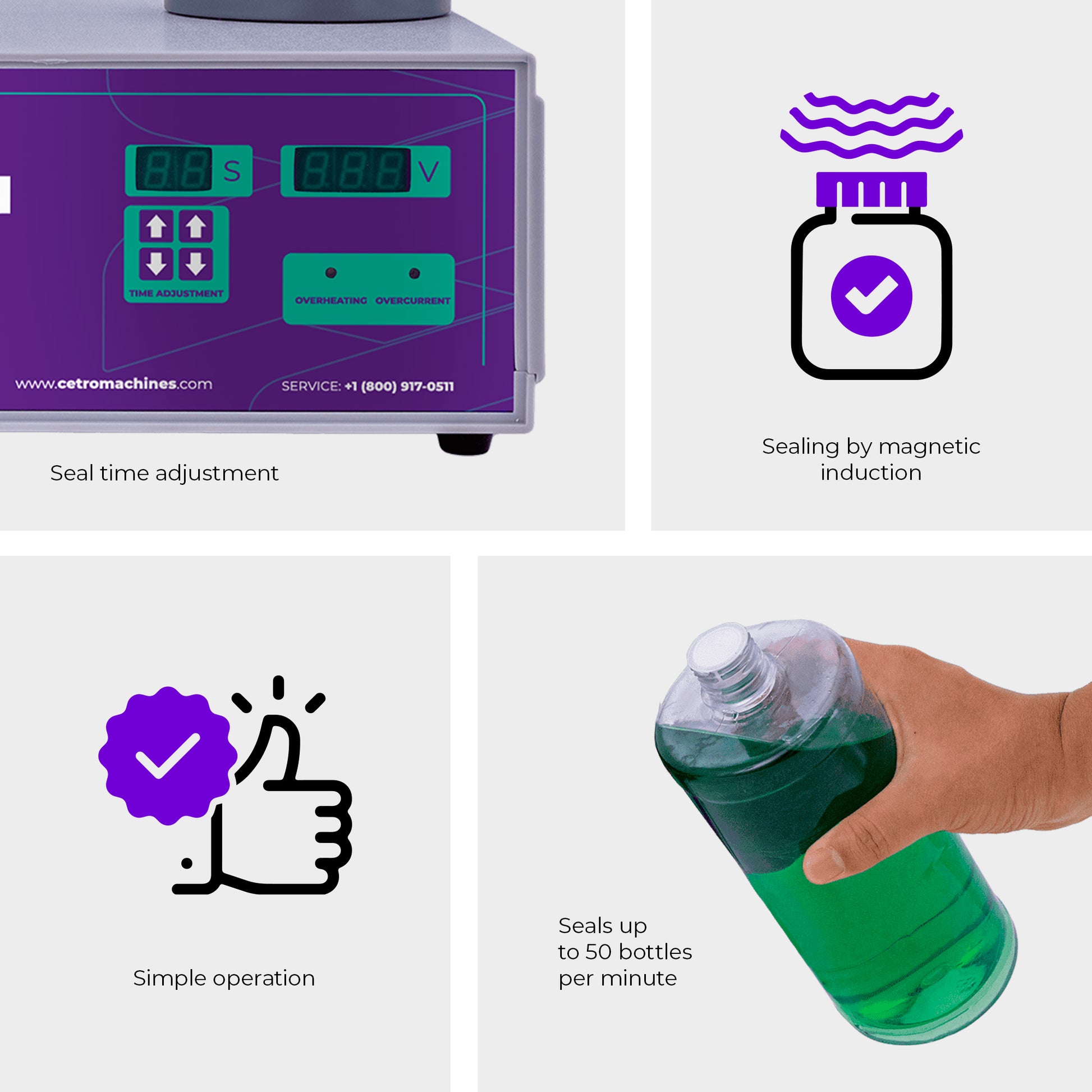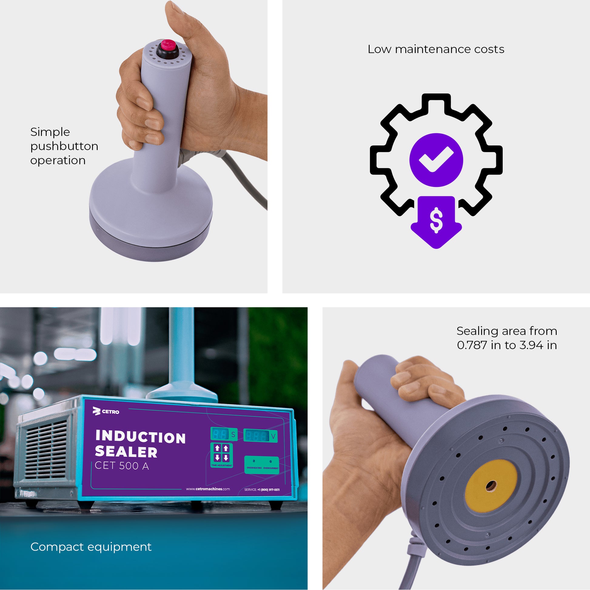 The manual induction sealing process is simple and fast, ideal for small and medium businesses. Cetro Manual Induction Sealer Machine CMSM I-100 T has high technology and is compact enough to easily and safely transport to any workspace sector.