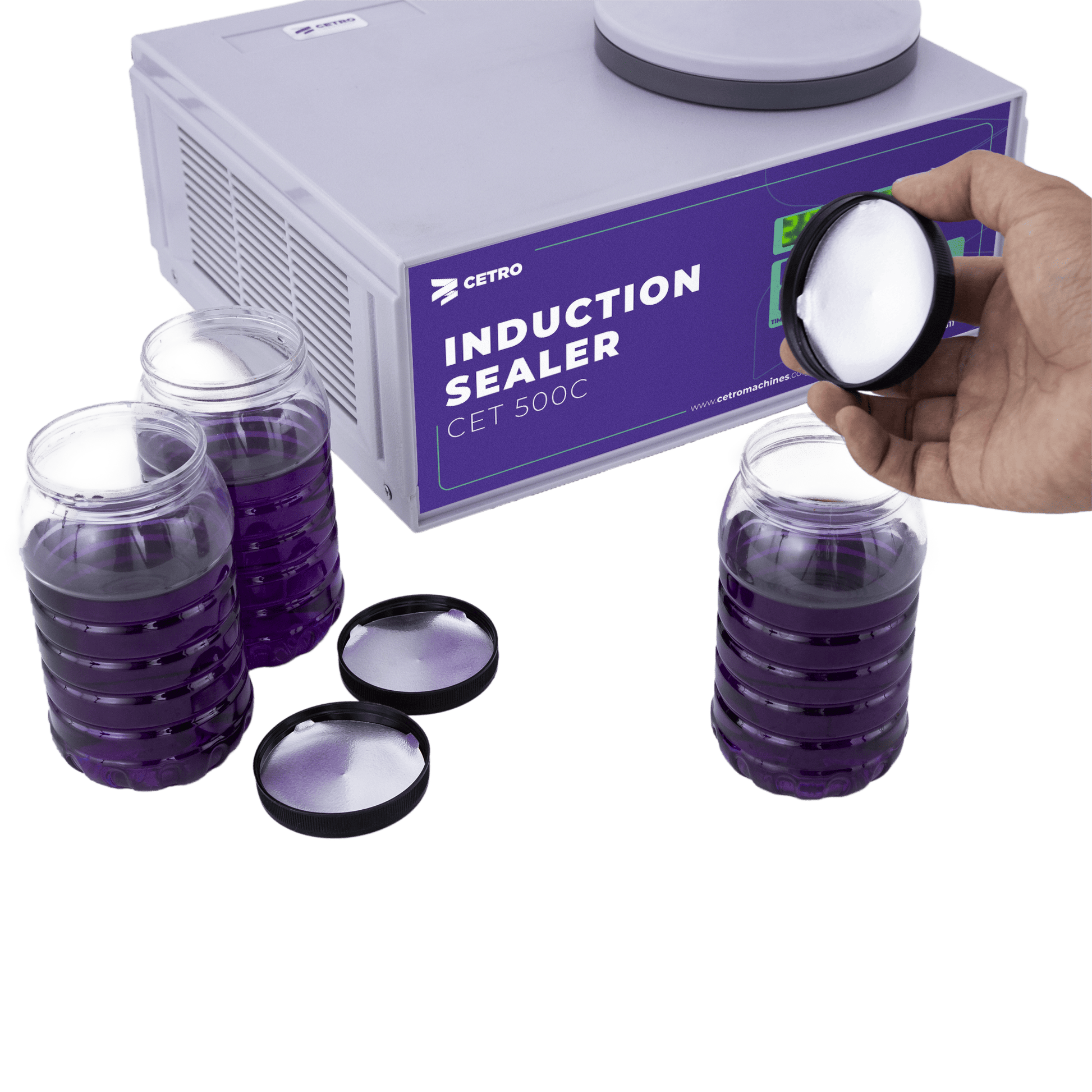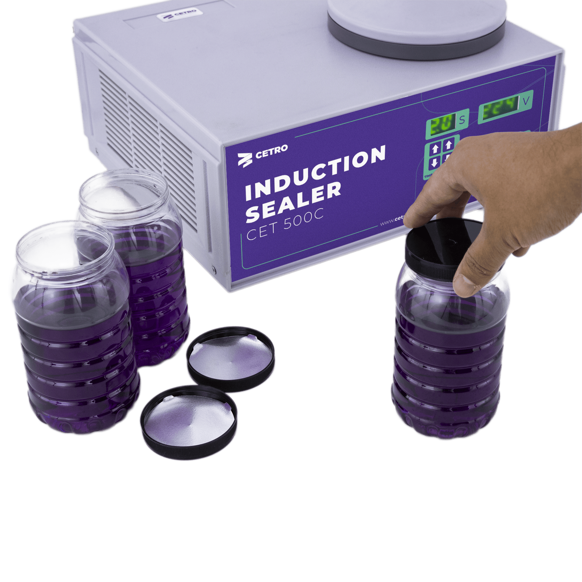 Cetro Manual Induction Sealer Machine CMSM I-130 T uses the electric magnetic induction principle to produce high heat to attach the seal or liner made of plastic/aluminum or paper/aluminum to the mouth of the packaging.