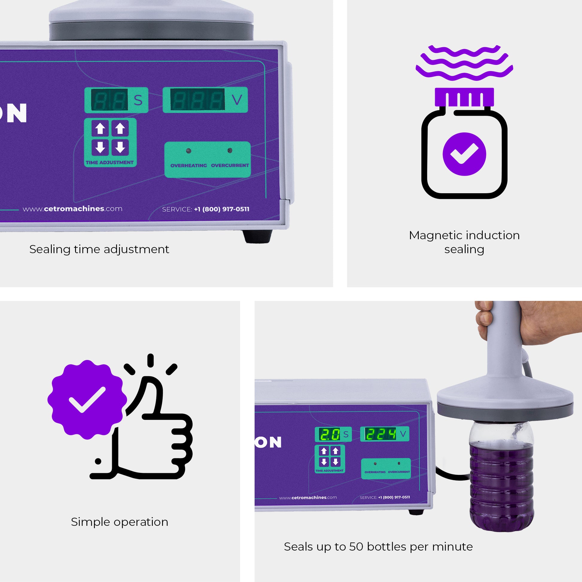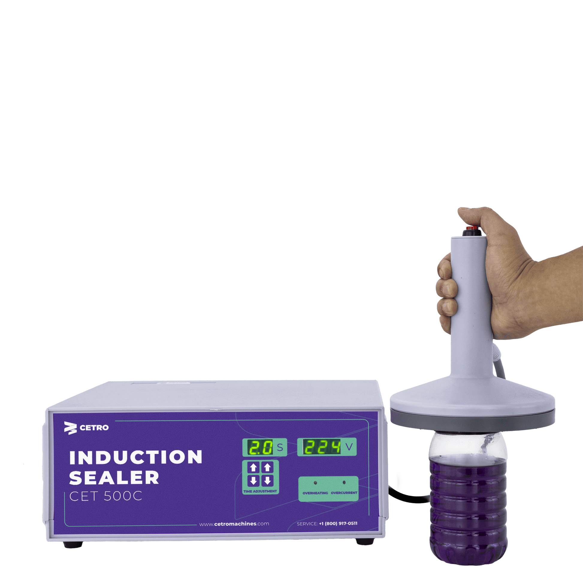 Cetro Manual Induction Sealer Machine CMSM I-130 T can seal bottles and packages hermetically through the magnetic induction principle that produces heat to perfectly attach seals and liners into packaging.
