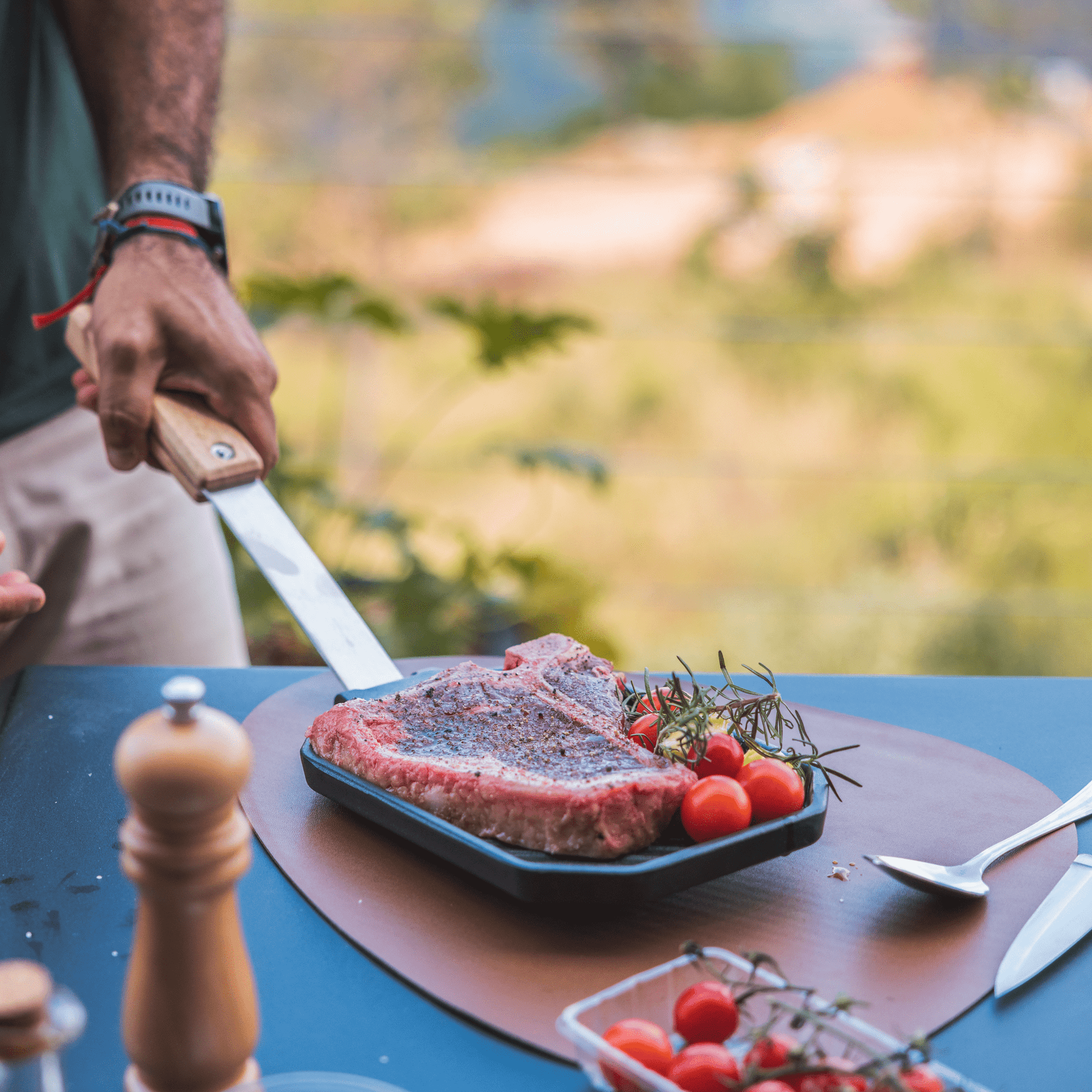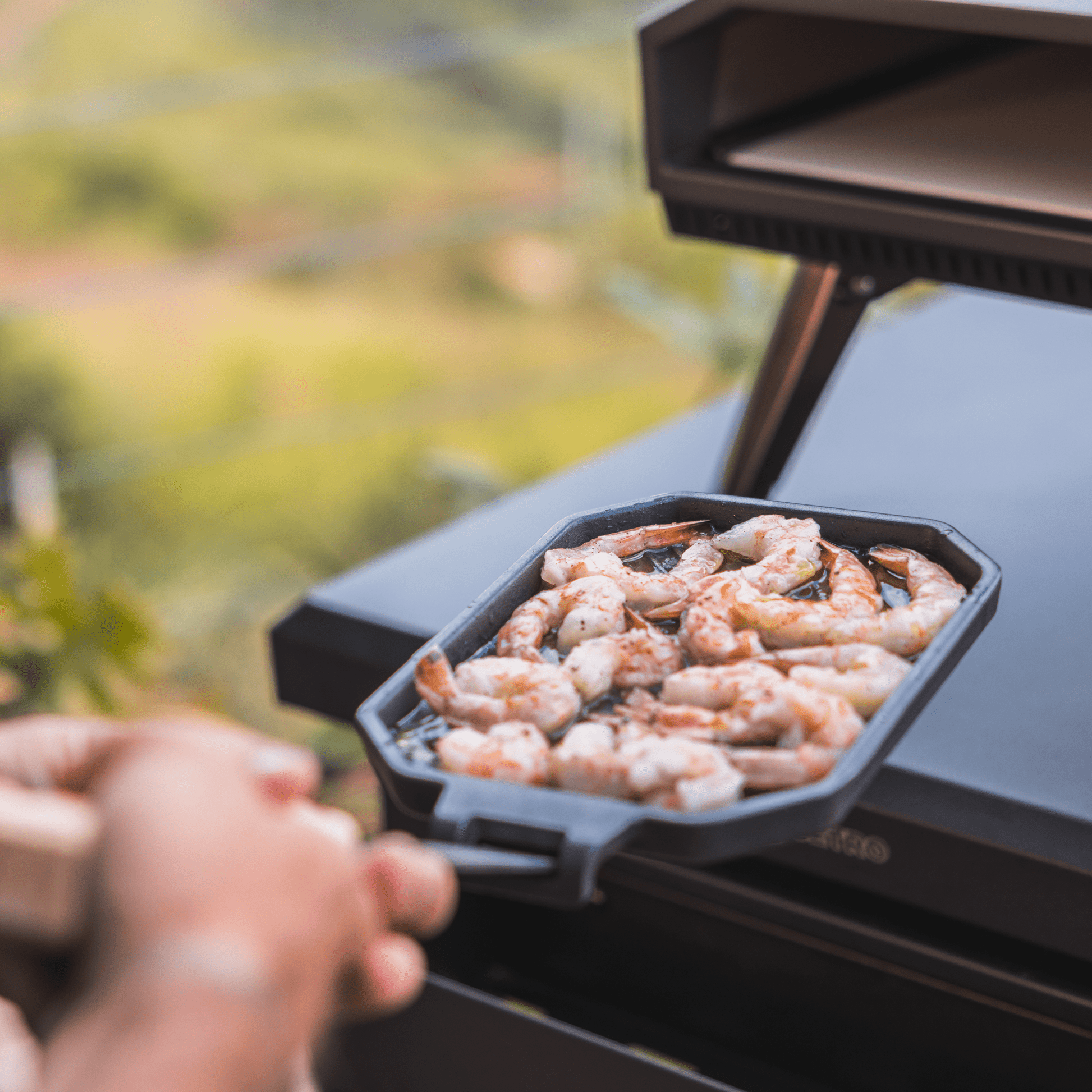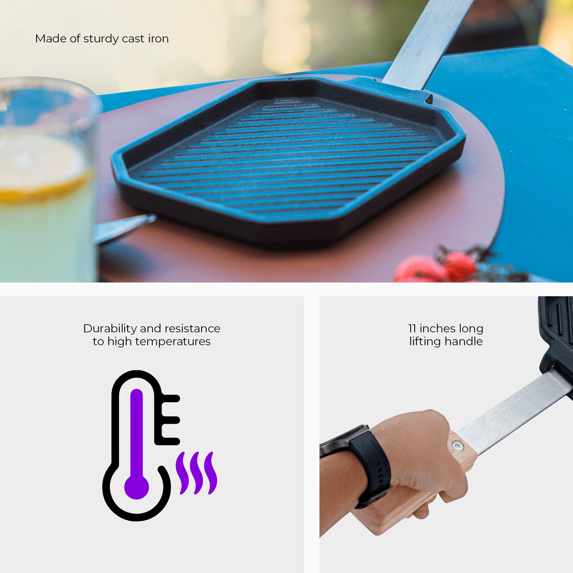 Equipped with a long 11 inches handle, the Frying Pan can be lifted to make it easier to move the griddle or grill, and to protect your hands from the heat during cooking. This Nino accessory provides the perfect balance between practicality and efficiency.
