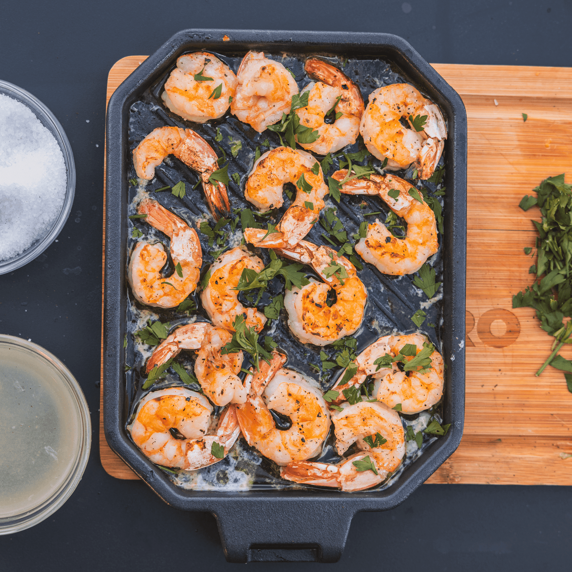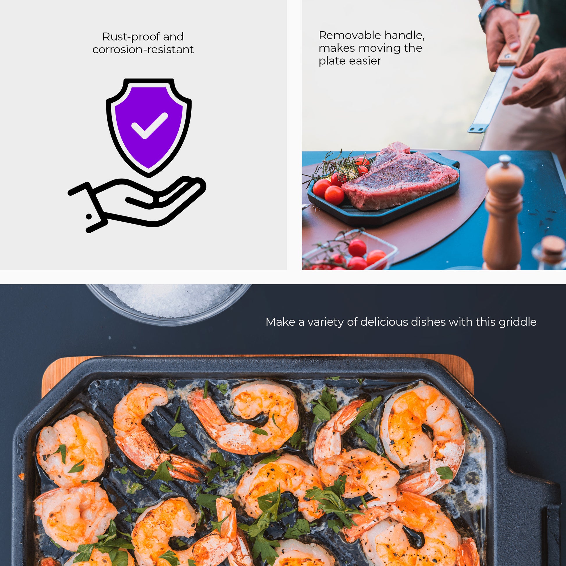 The flat side of the pan is used to grill a variety of dishes, including meat, cheeses, fish, seafood, sandwiches, eggs, chicken, and pancakes. Prepare different tasty dishes with Cetro Cast Iron Frying Pan.