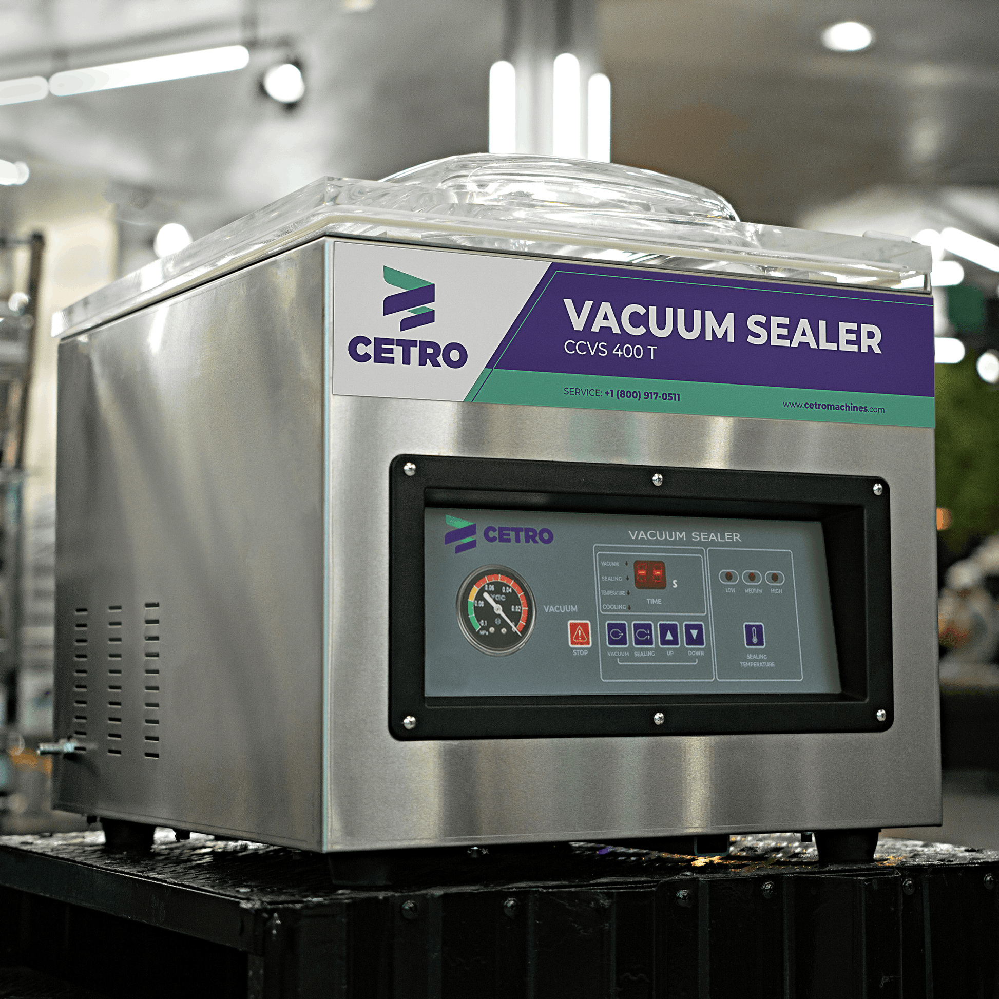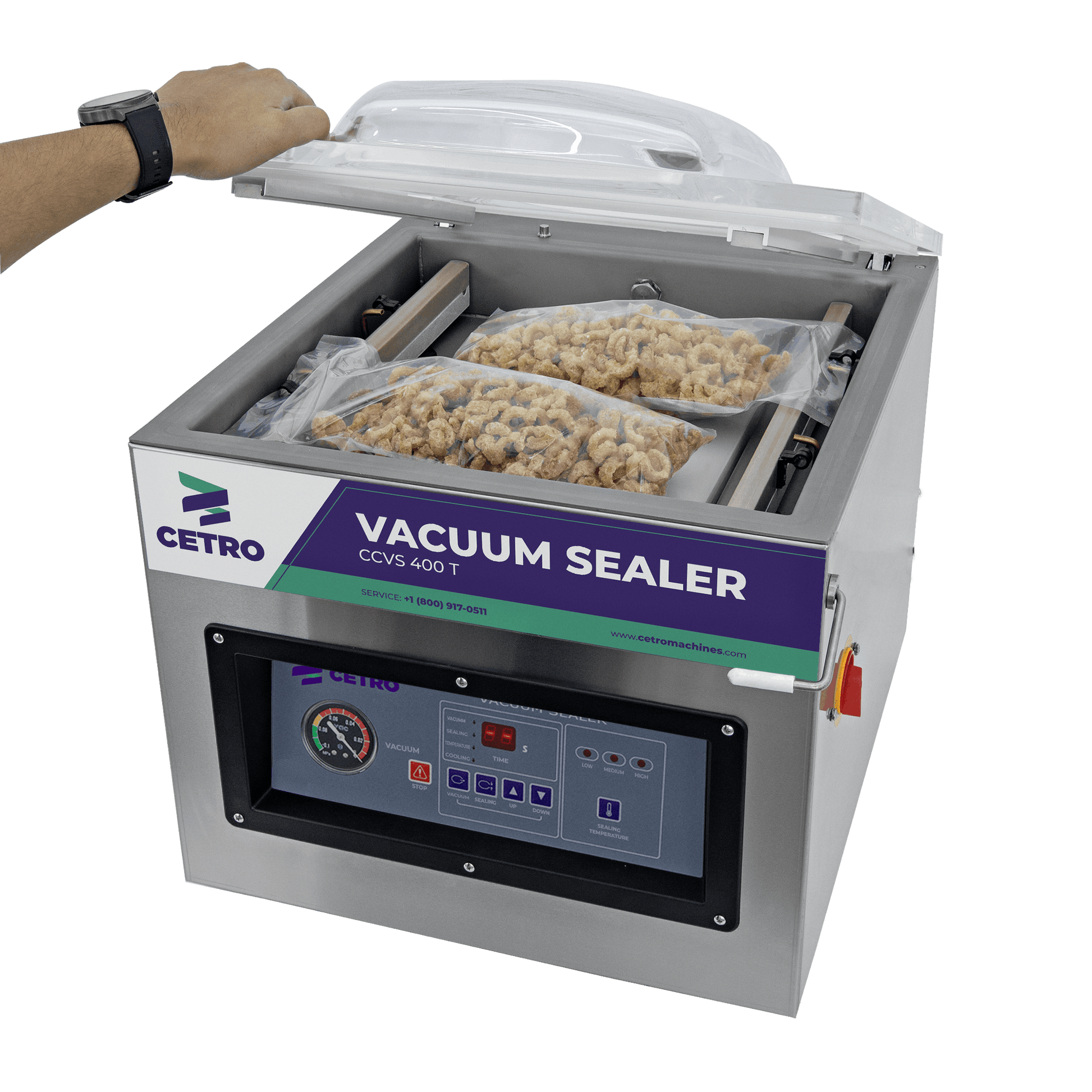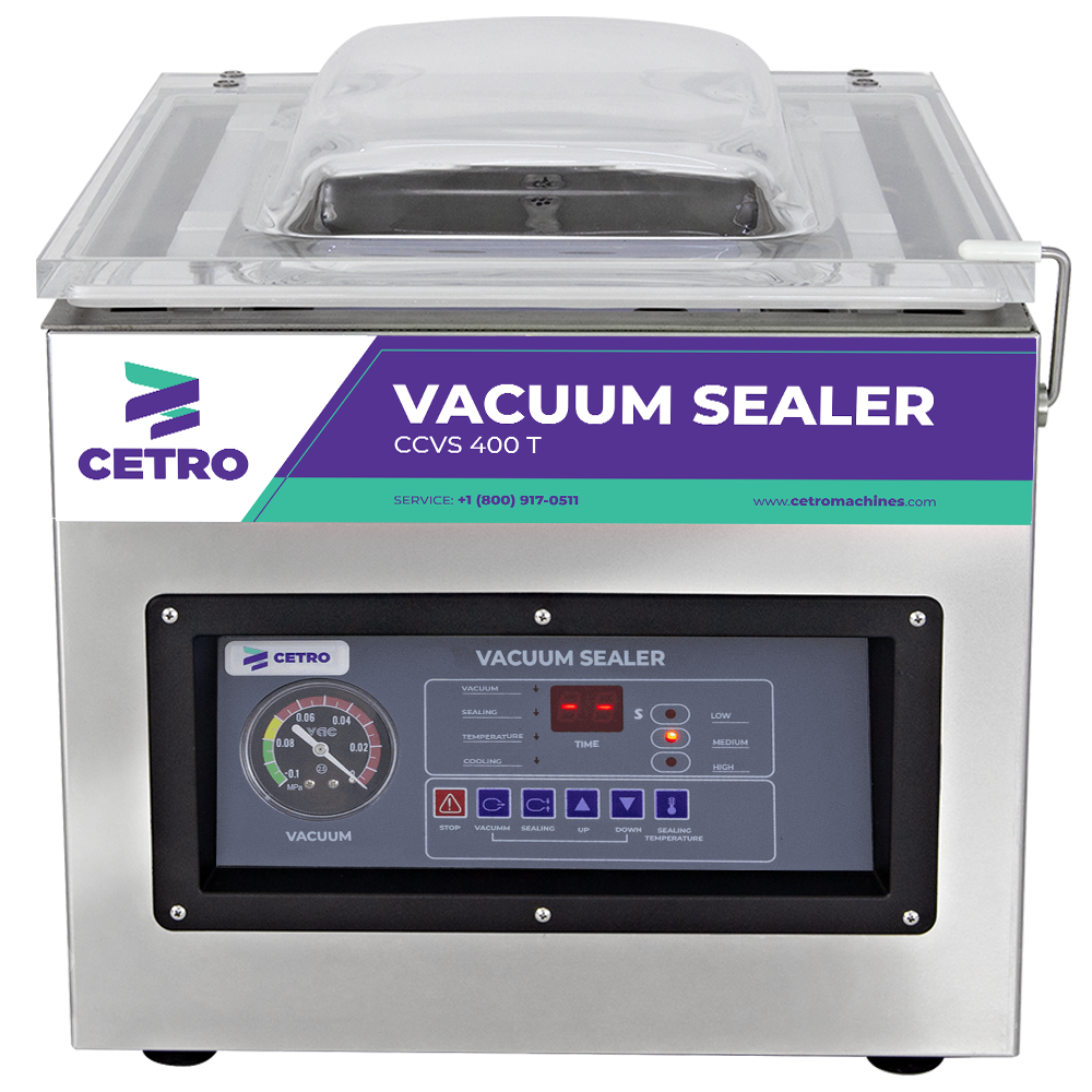Cetro Chamber Vacuum Sealer is the ideal equipment for businesses that need a compact and robust vacuum sealer to work on a tabletop, speed up production, and seal products with liquids.
