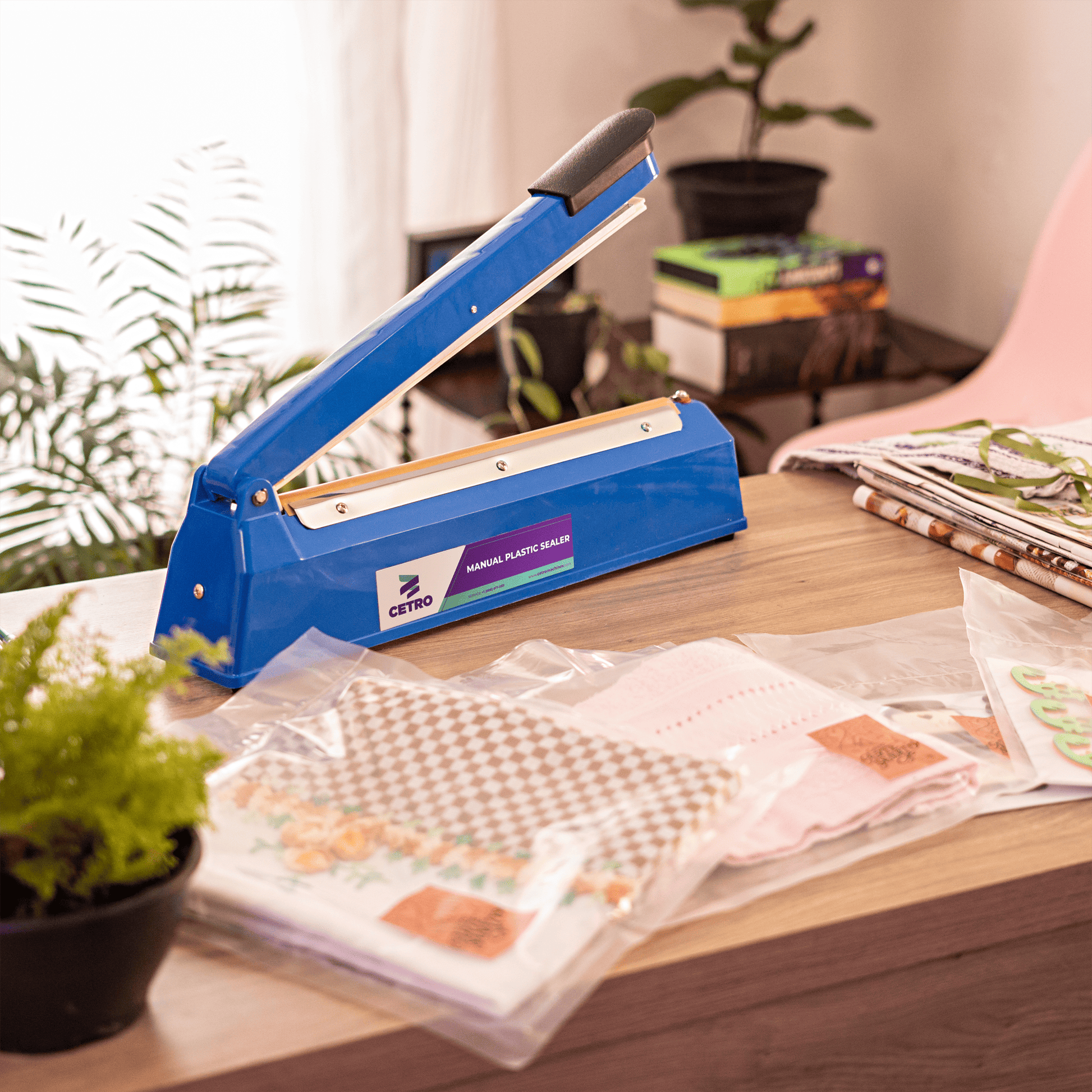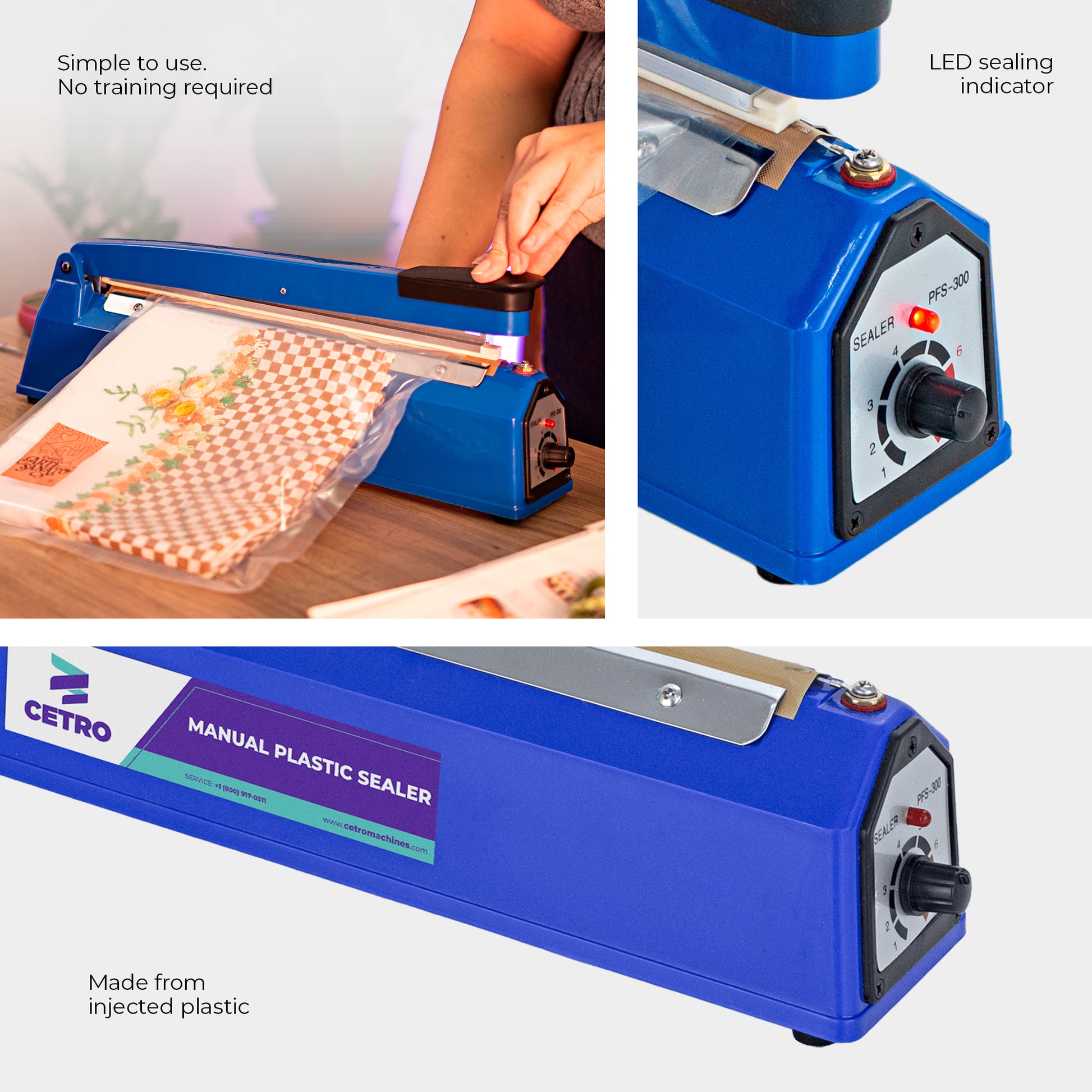 Made of engineering plastic, CMSM S-300 is a quality product with low maintenance and spare parts costs. This makes Cetro equipment the ideal choice to simplify the sealing process of the most varied types of products. In addition, it is portable and does not use much space, thus, it can be applied in businesses and homes.