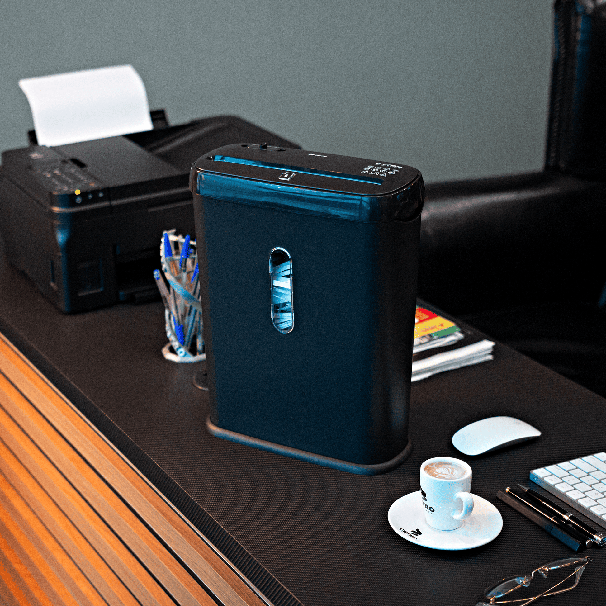 The equipment has a 8.7 inches compartment entry suitable for a variety of document sizes, from envelopes to A4 sheets, and is efficient in destroying documents without pre-cuts or adjustments.