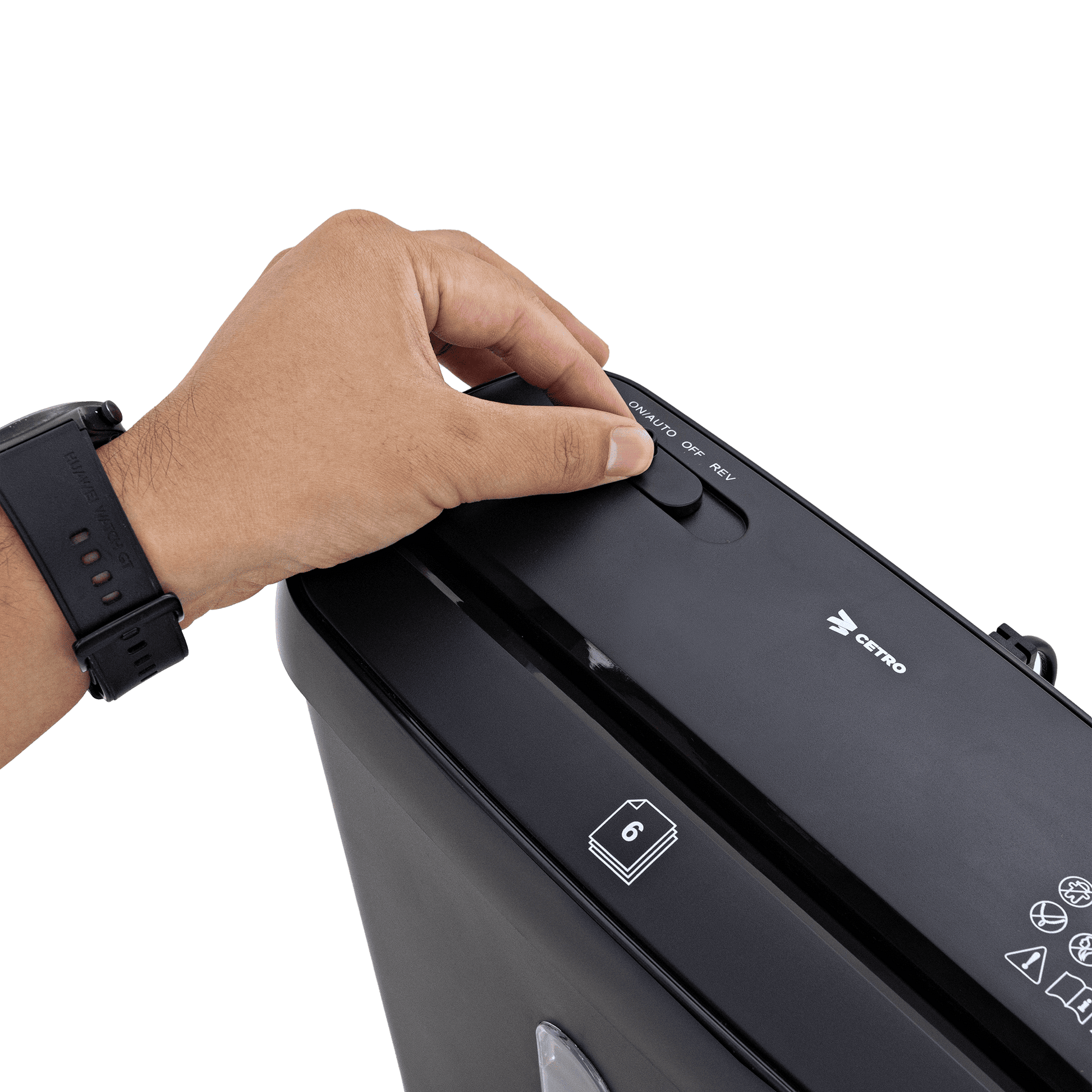 Cetro Office Shredding Machine COSM 10 SC can shred up to 6 sheets per cycle and is ideal for busy offices. Its shredding speed of up to 110 inches per minute ensures quick and efficient destruction of documents, optimizing time and increasing productivity.