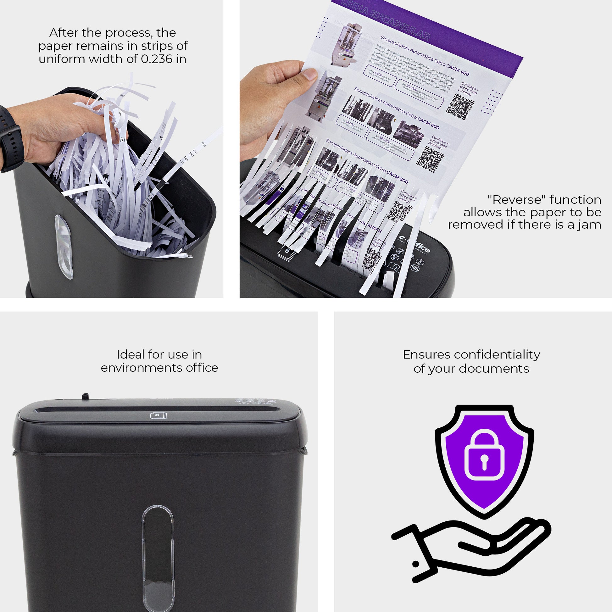 With advanced technology for strip cutting papers and its high performance, Cetro Office Shredding Machine COSM 10 SC is essential to protect your information and the confidentiality of your documents.