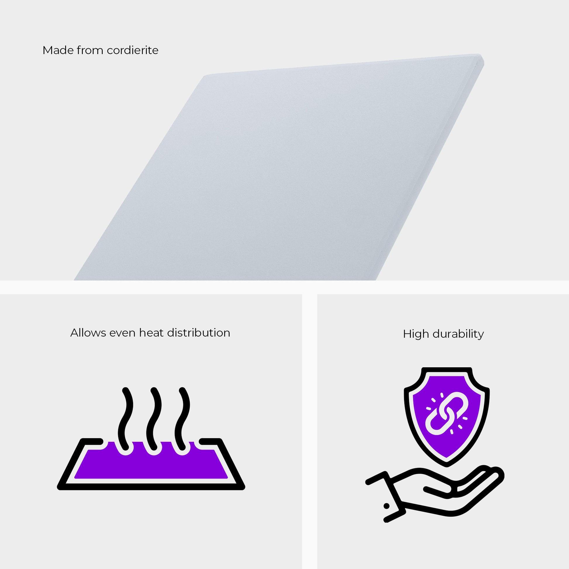 Cetro Pizza Stone CFBM PO-300 S G is an important accessory for gas ovens. Its technology allows uniform heat distribution, optimizing the baking quality of bread, pizzas, meats, and more. It also improves the crunch and texture of food by simulating the effect of a wood-fired oven.