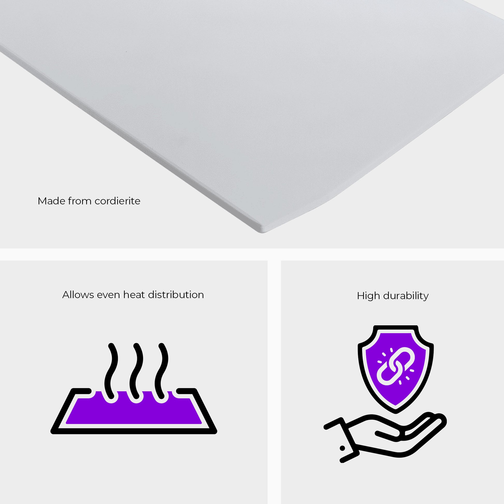 Cetro Pizza Stone CFBM PO-400 S G is an important accessory for gas ovens. Its technology allows uniform heat distribution, optimizing the baking quality of bread, pizzas, meats, and more. It also improves the crunch and texture of food by simulating the effect of a wood-fired oven.