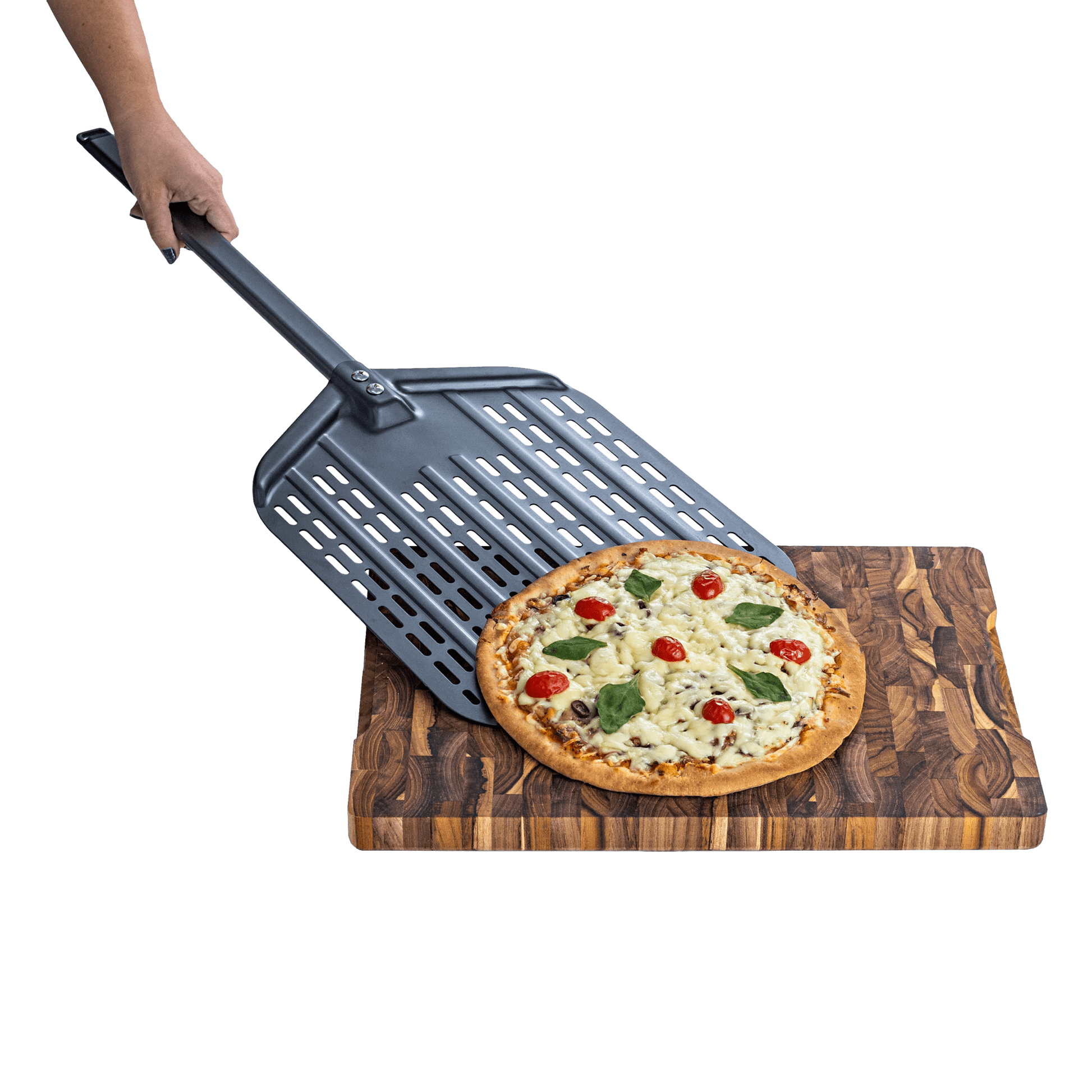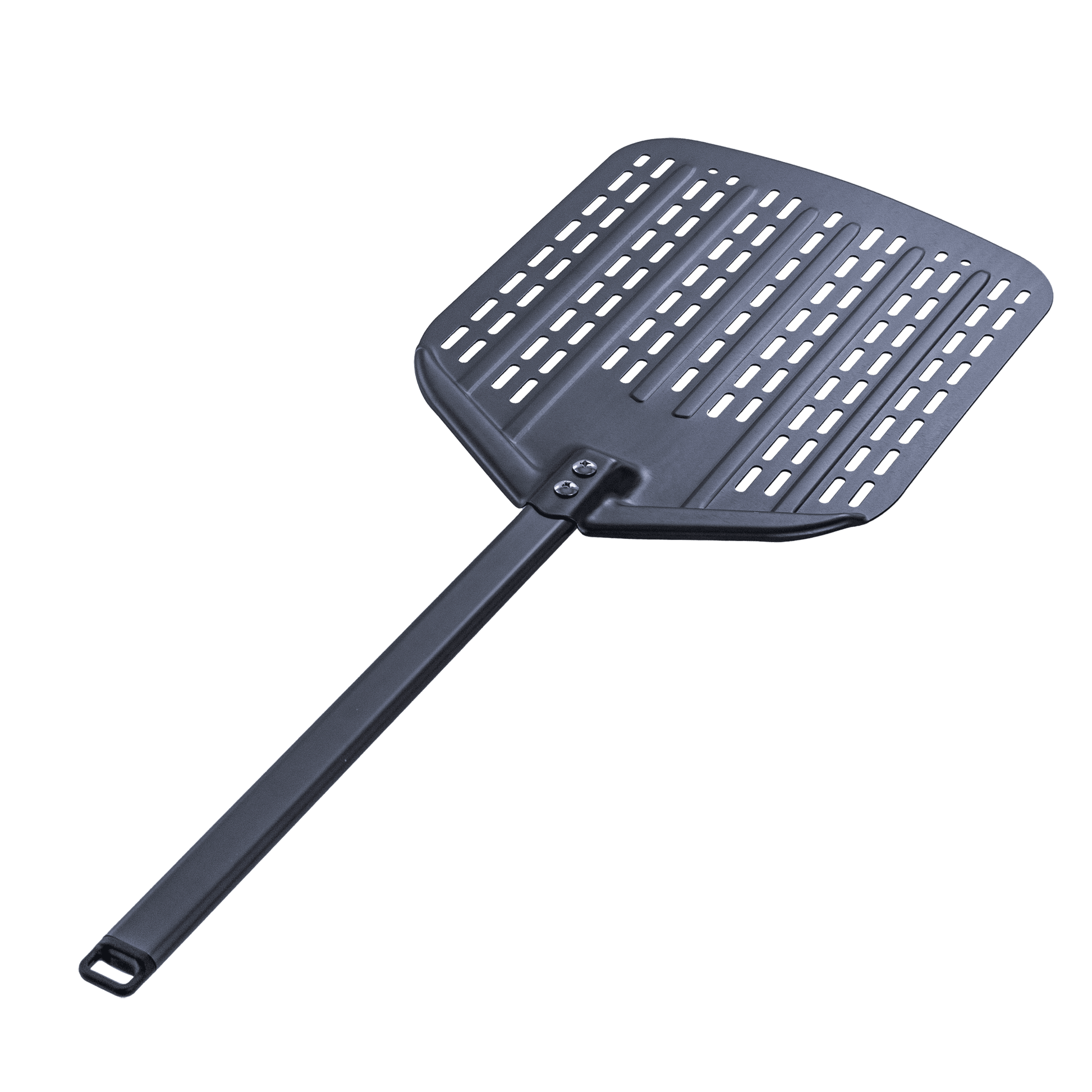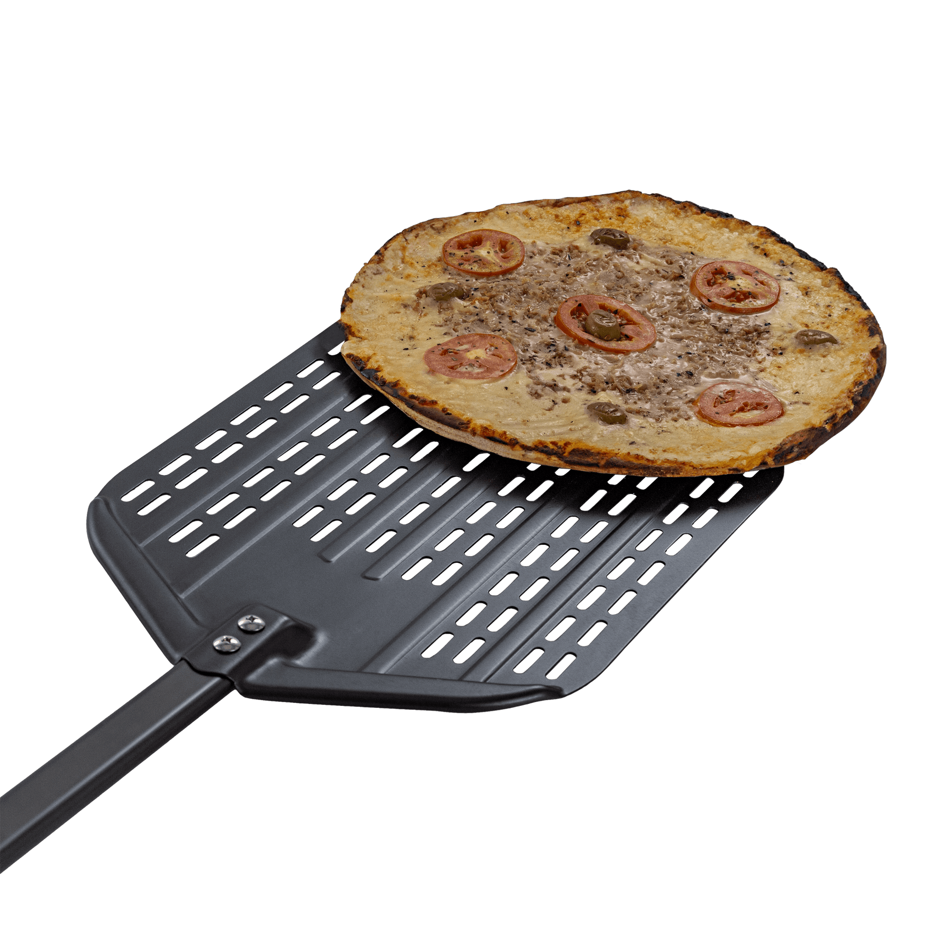 Cetro Pizza Turning Peel features a design that allows steam to escape during cooking, resulting in a crispy bottom crust and minimizing the adherence of burnt flour. Its structure reduces the surface area, making it easier for pizzas to slide in and out of the oven without sticking to the peel.