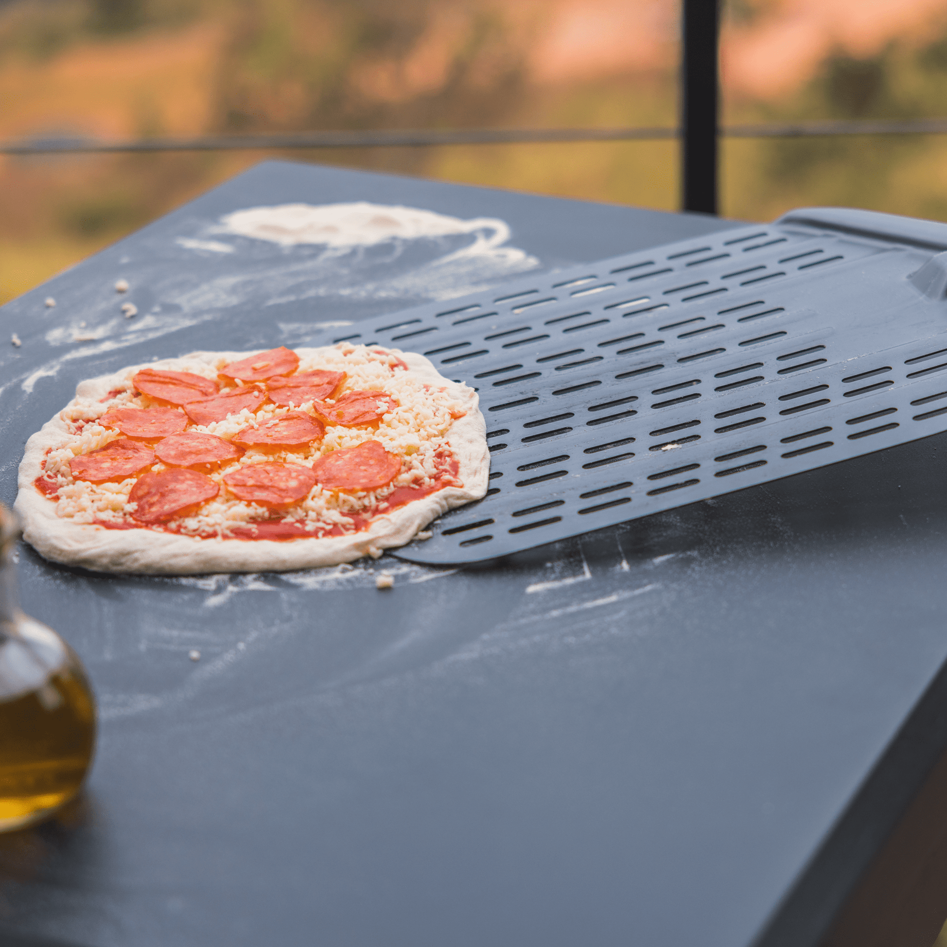 Cetro Pizza Turning Peel is not only the best choice for baking pizzas but also an essential accessory to prepare cakes, bakes, and pies. Its tapered and flexible edge requires minimal or no use of flour, ensuring an effortless pizza-making experience.