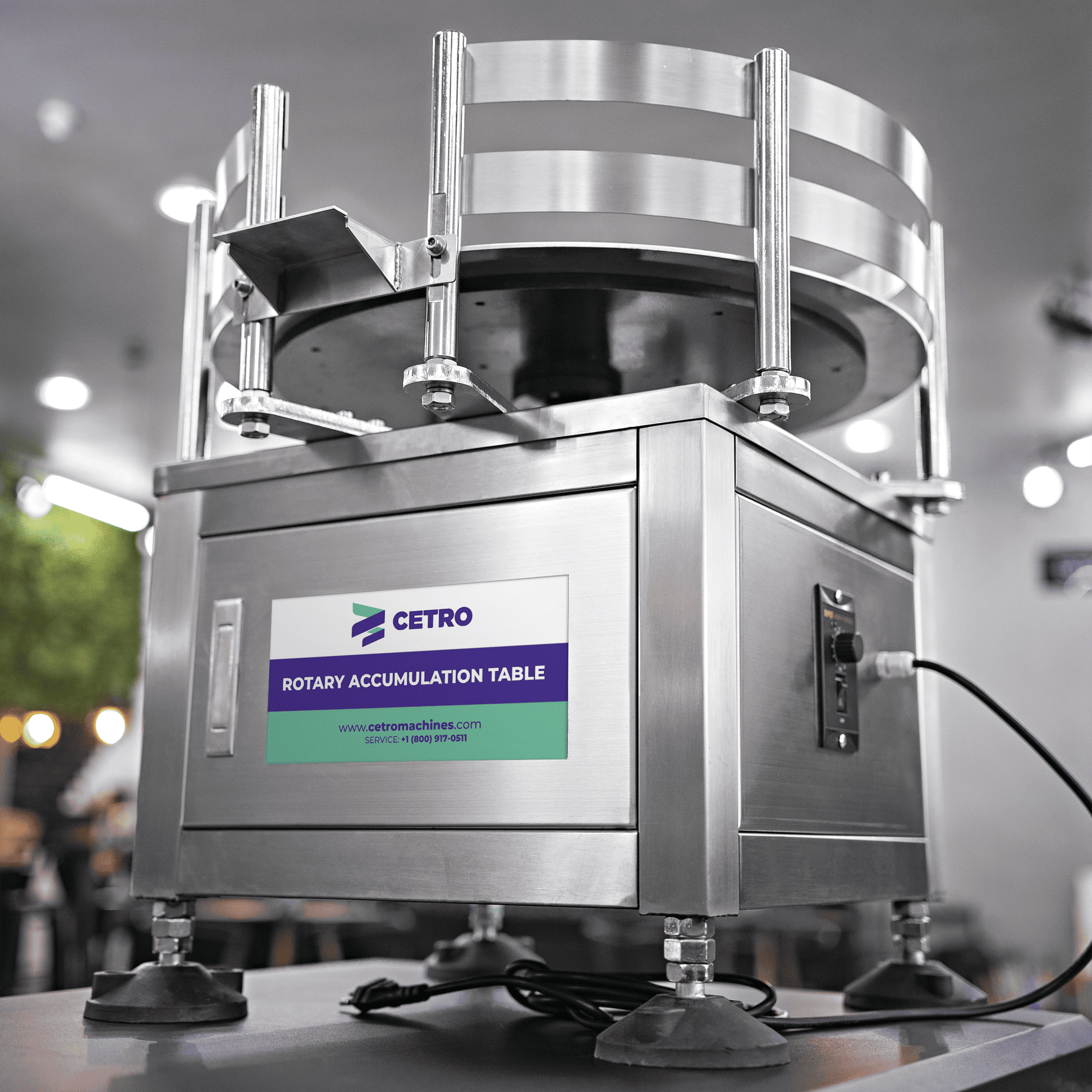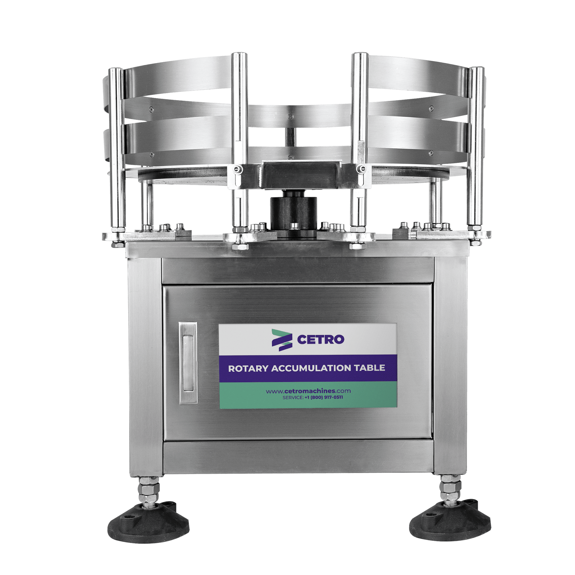 Cetro Rotary Table Machine Accumulator CRT A 500 T was designed to work with other machines on a production line performing the function of accumulating products efficiently. This Table is an integral part of the process, facilitating and automating the reception of products coming from the conveyor belt.
