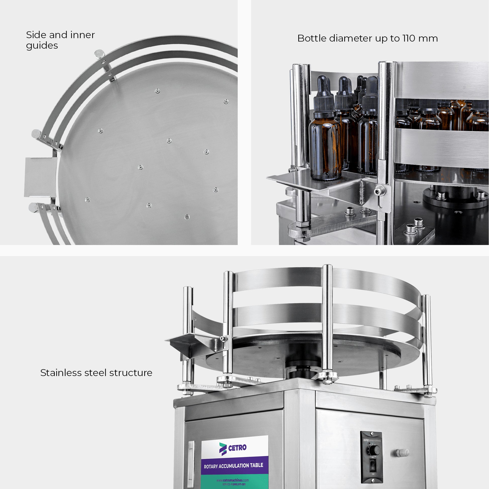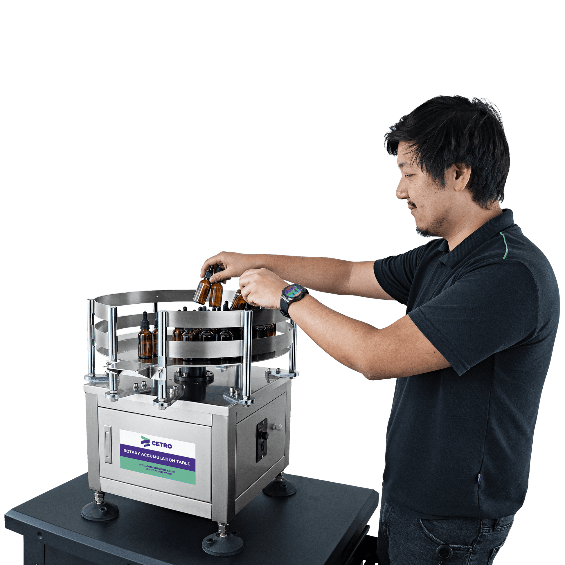 To ensure your production line is more practical and optimized, Cetro Rotary Table Machine Accumulator CRT A 500 T can work with other solutions from the Cetro Marketplace, such as Cetro Transport Conveyor Belts, Filling Machines, Dosing Machines, Capping Machines, and Labeling Machines.