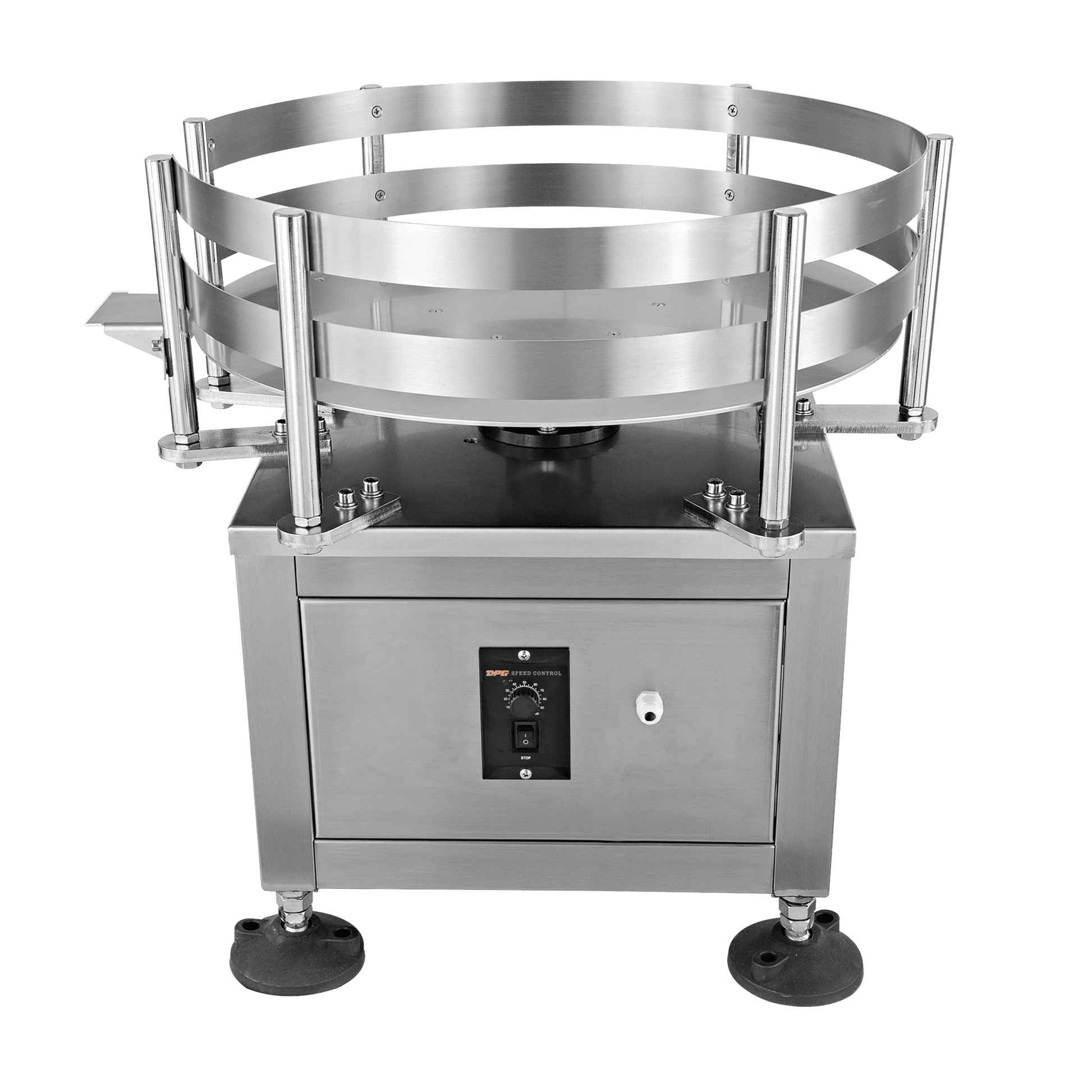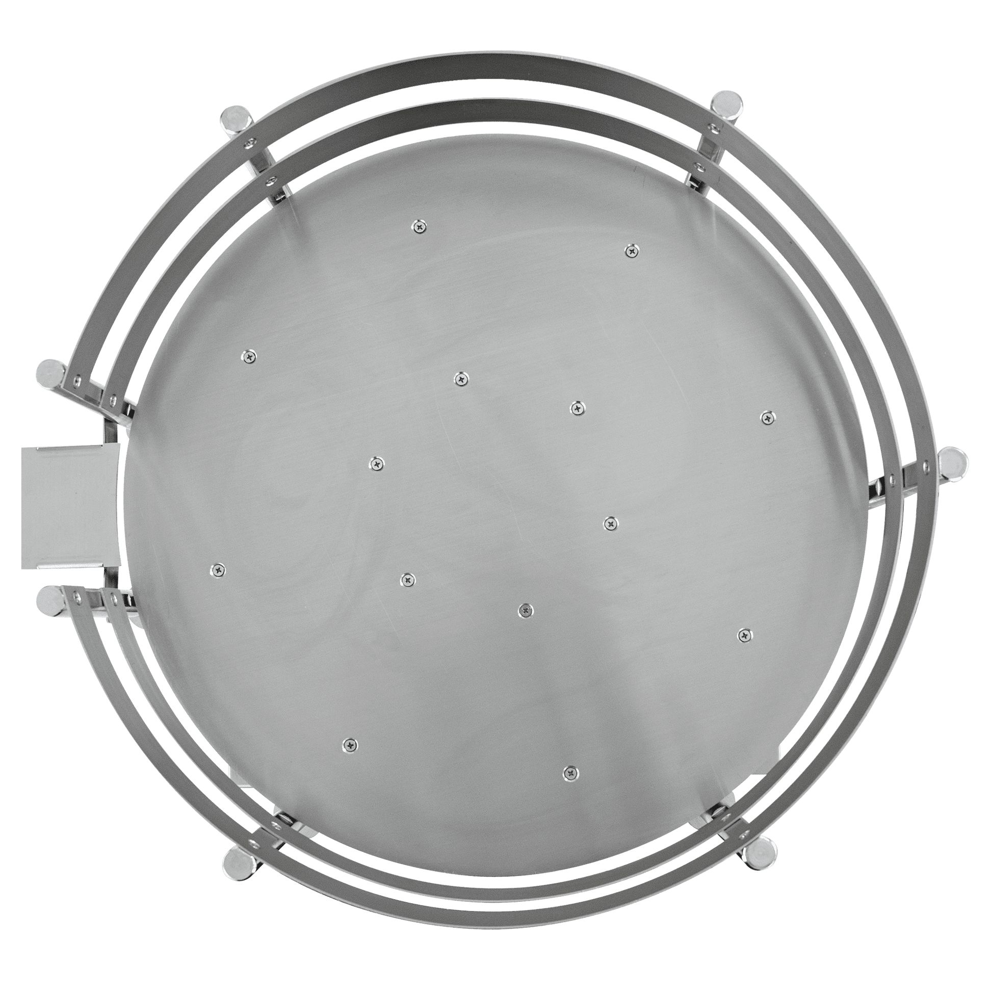 Made of stainless steel, the equipment ensures durability and quality. It has internal and side guides for better package accommodation. With a standard diameter of 50 cm, the Rotary Table is suitable for bottles up to 4.3 inches in diameter, adapting ideally to different productions.