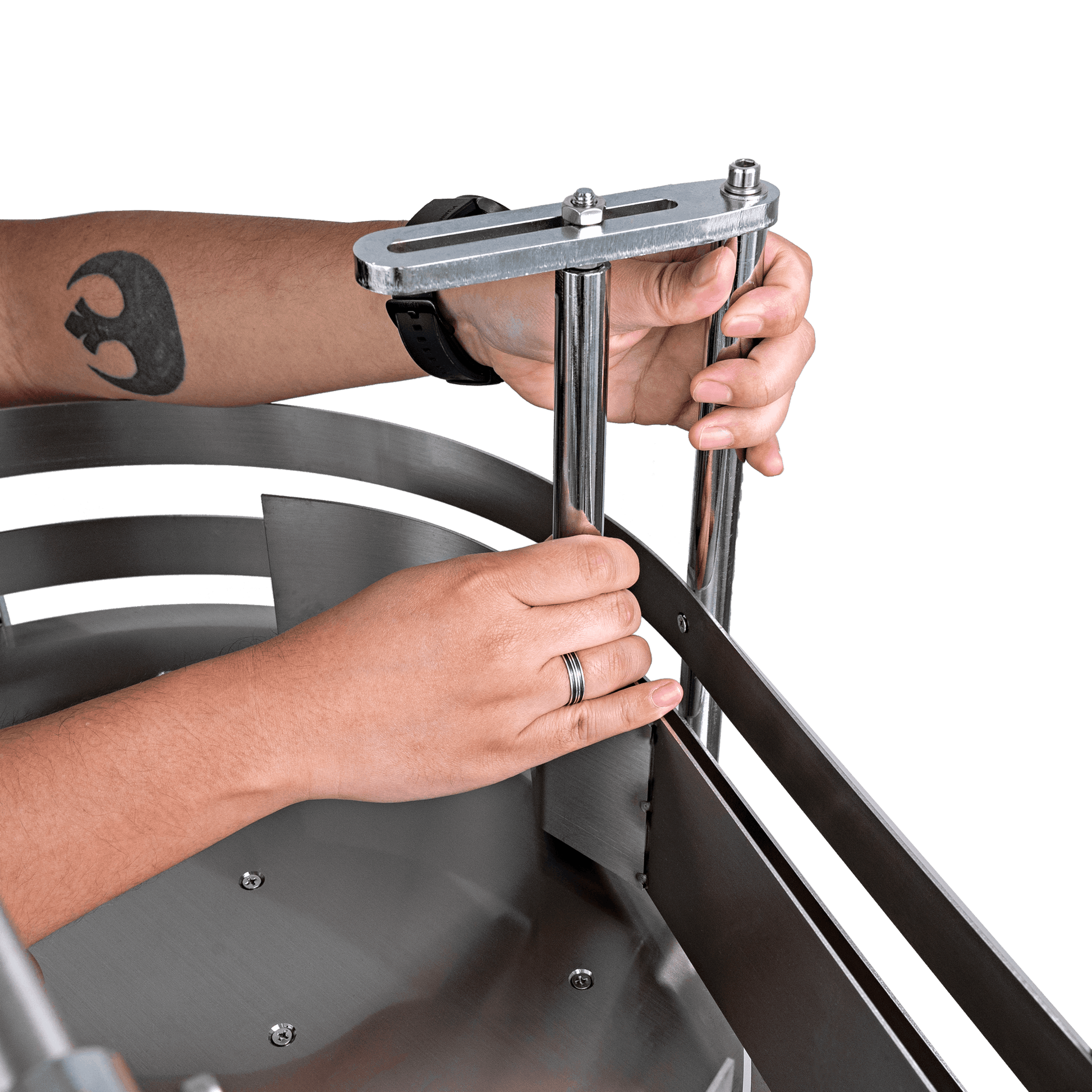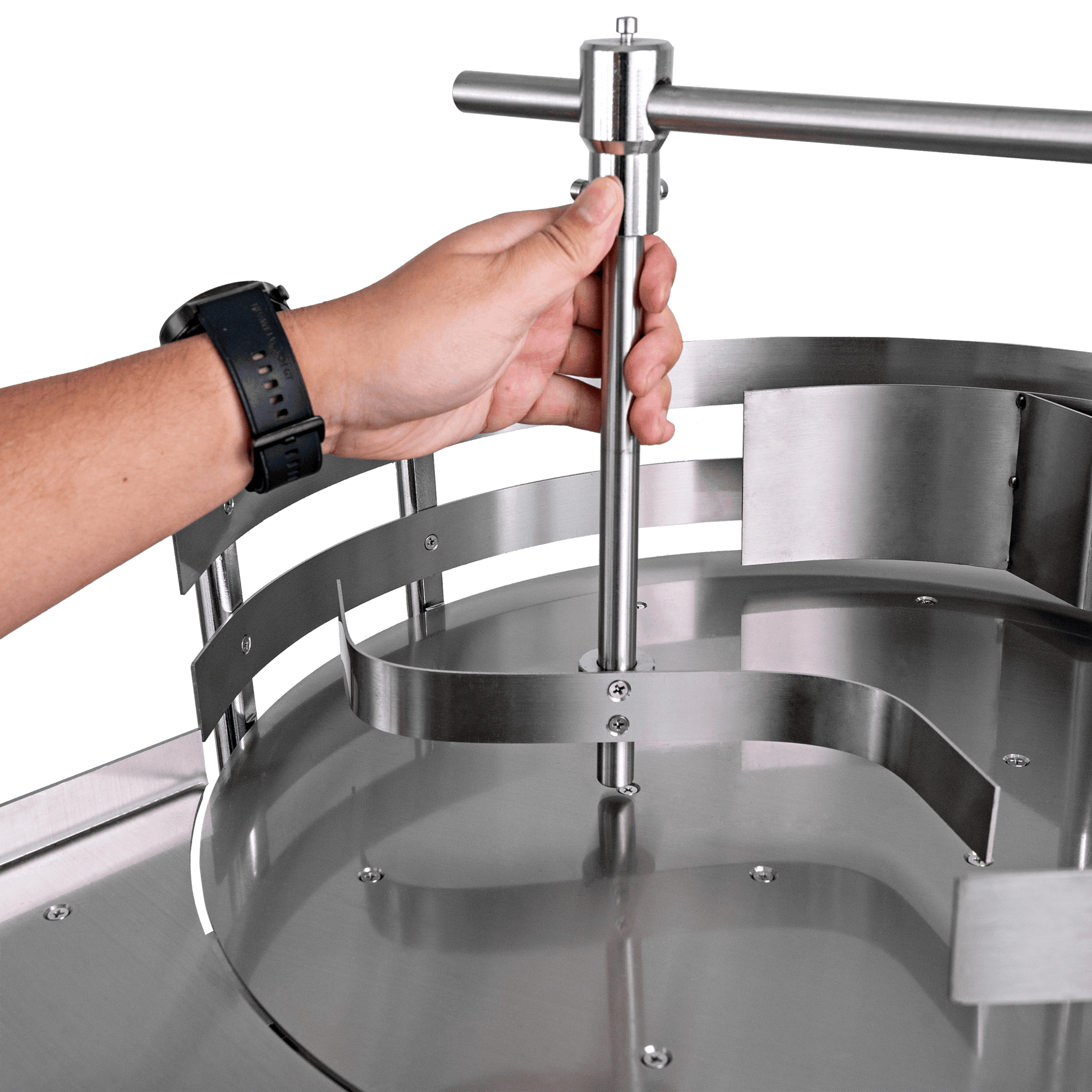 The great advantage of this machine is its versatility on bench lines. Cetro Rotary Table Machine Feeder offers height adjustments of up to 11 inches, allowing flexible adaptation to customer specifications.