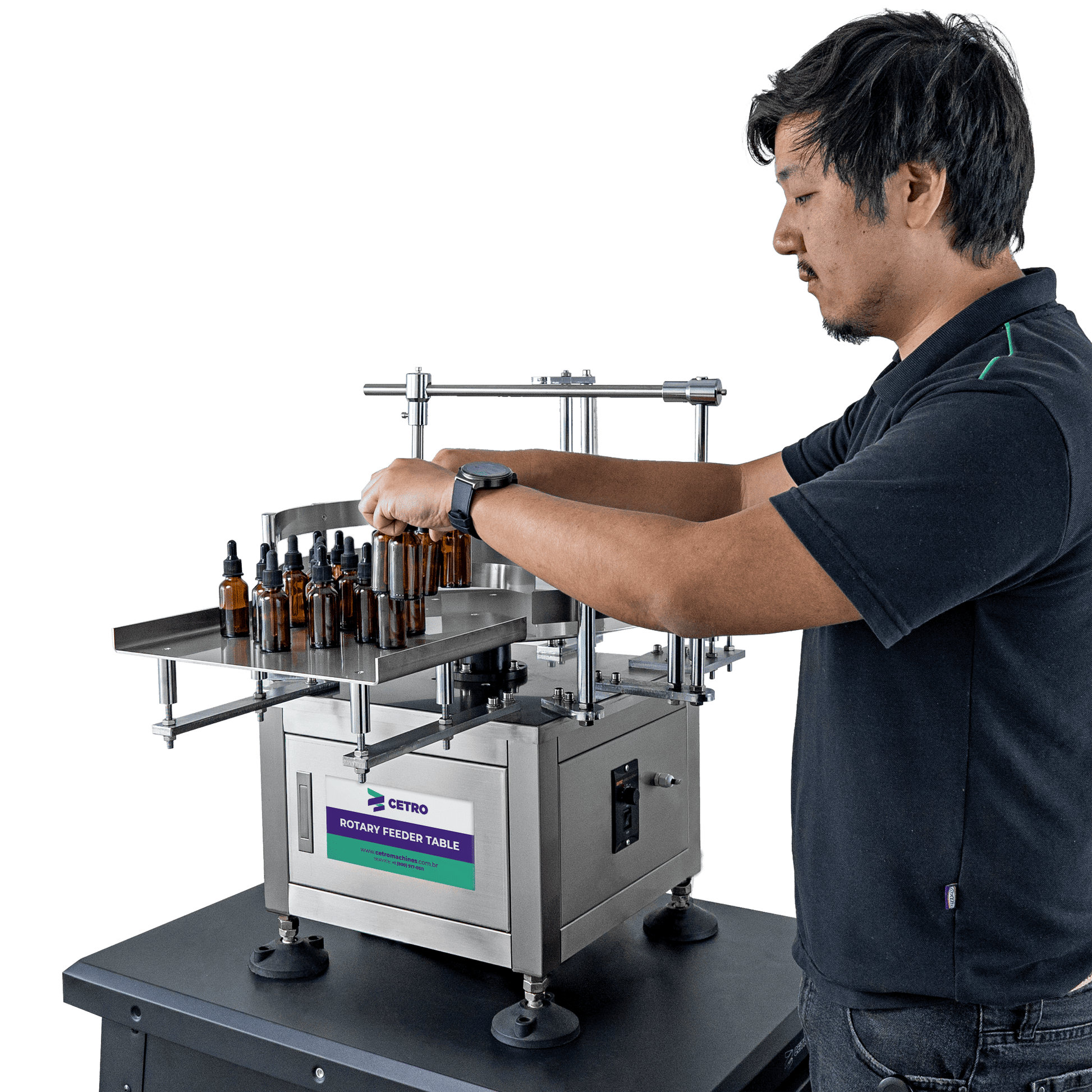 To ensure your production line is more practical and optimized, Cetro Rotary Table Machine Feeder CRT F-500 T can work with other solutions from the Cetro Marketplace, such as Cetro Transport Conveyor Belts, Filling Machines, Dosing Machines, Capping Machines, and Labeling Machines.