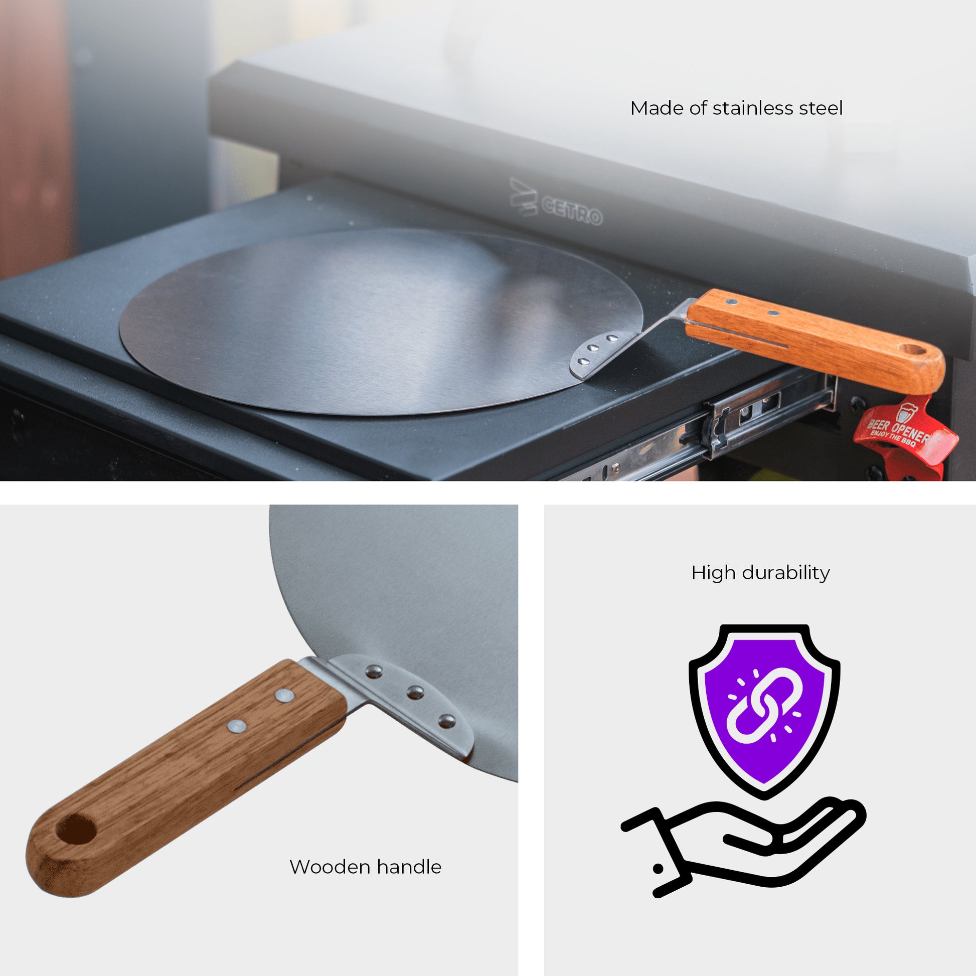 Cetro Round Pizza Peel is a utensil with an ergonomic size that facilitates the movement of pizza while preparing and serving it, and allows more practicality and safety for cooking.