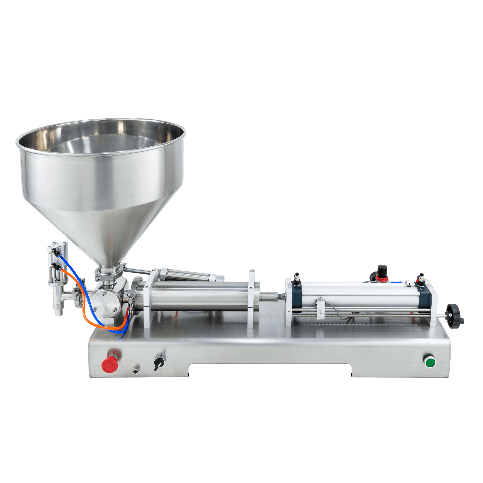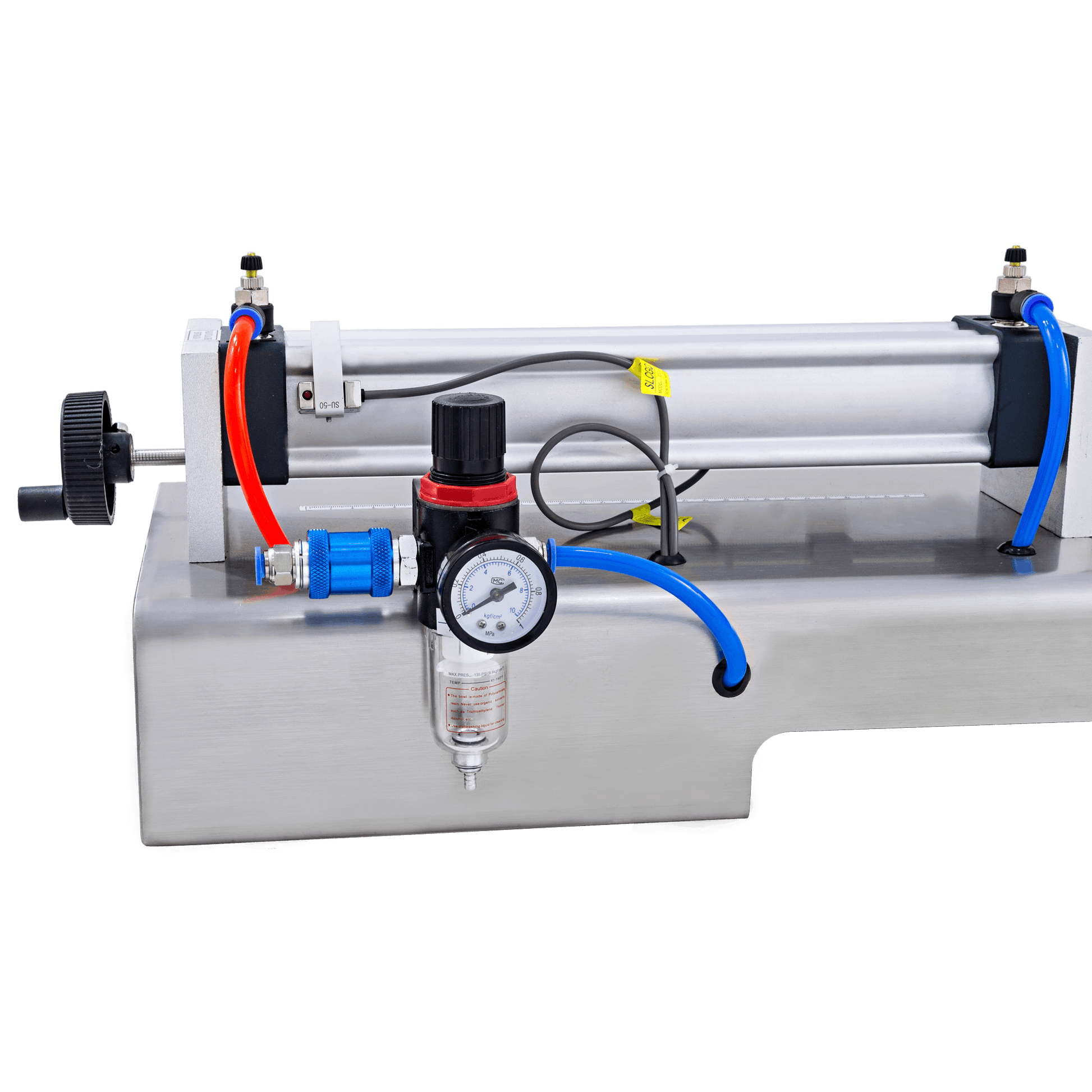 CSFM P-1000 has a pneumatic system, in which the piston has no contact with the product. Thus, cleaning is simple and practical: you will need a cleaner, such as water, alcohol, and detergent, and pass them through the entry and exit ducts and fill them at least ten times.
