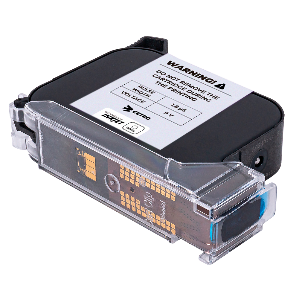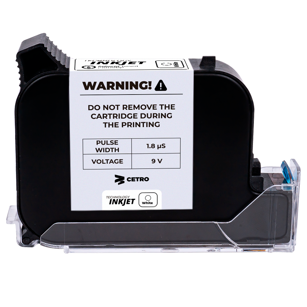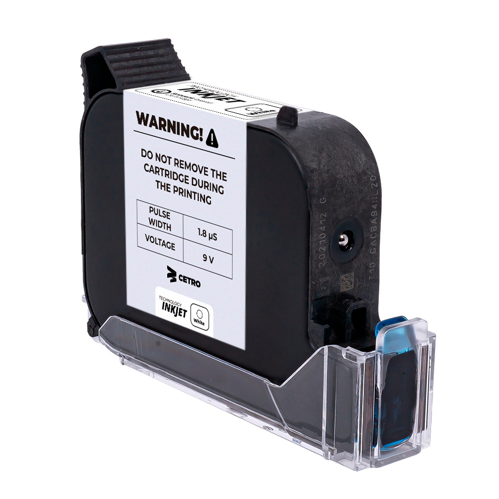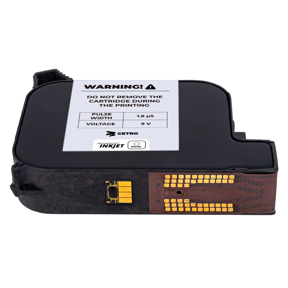 Cetro Solvent-based Inkjet Cartridge – White is developed exclusively for Cetro Inkjet Printer Handjet 7 and CIPM L1. This cartridge is highly adherent, ensuring sharpness and high-resolution printing with an average yield of 800,000 characters and a font width of half a millimeter.