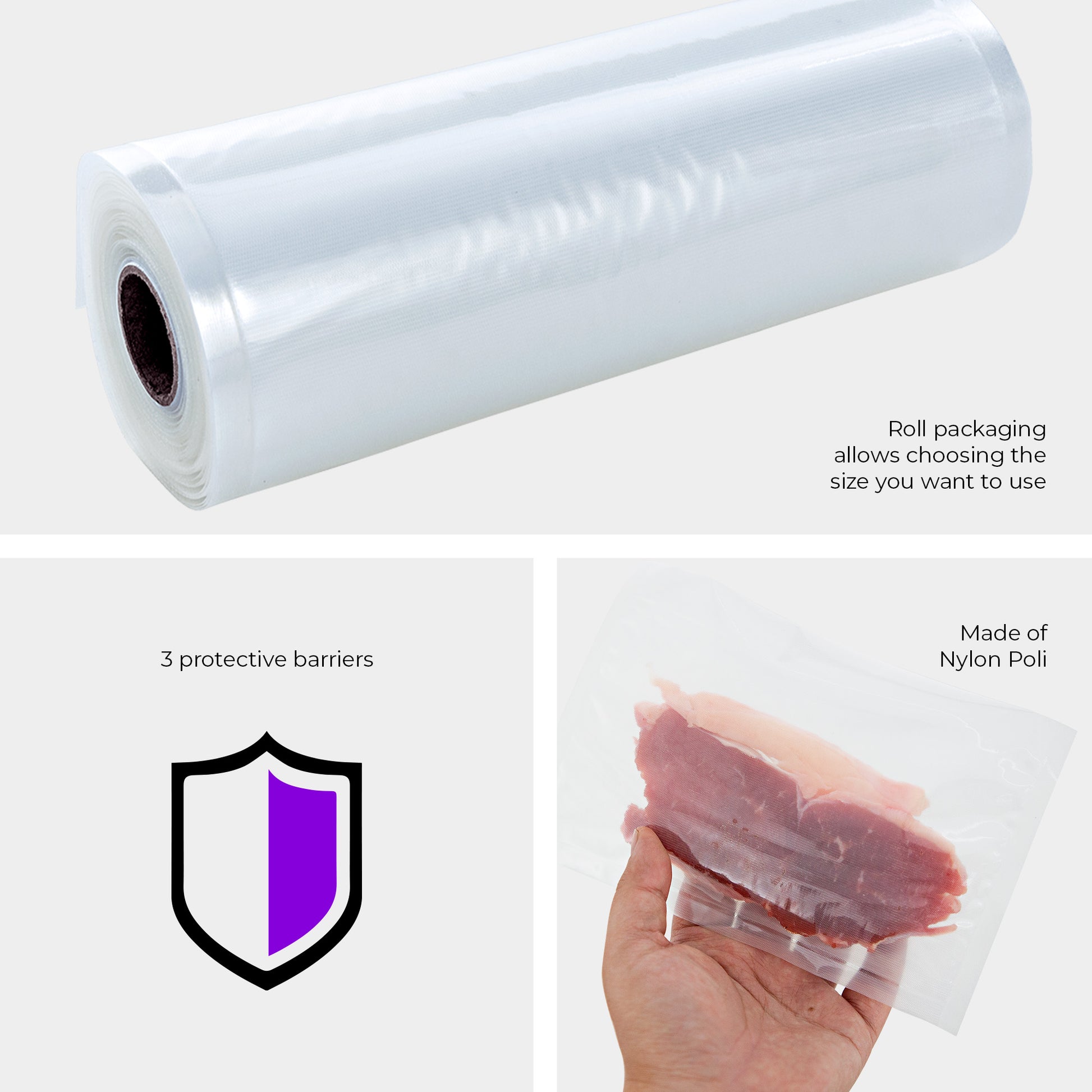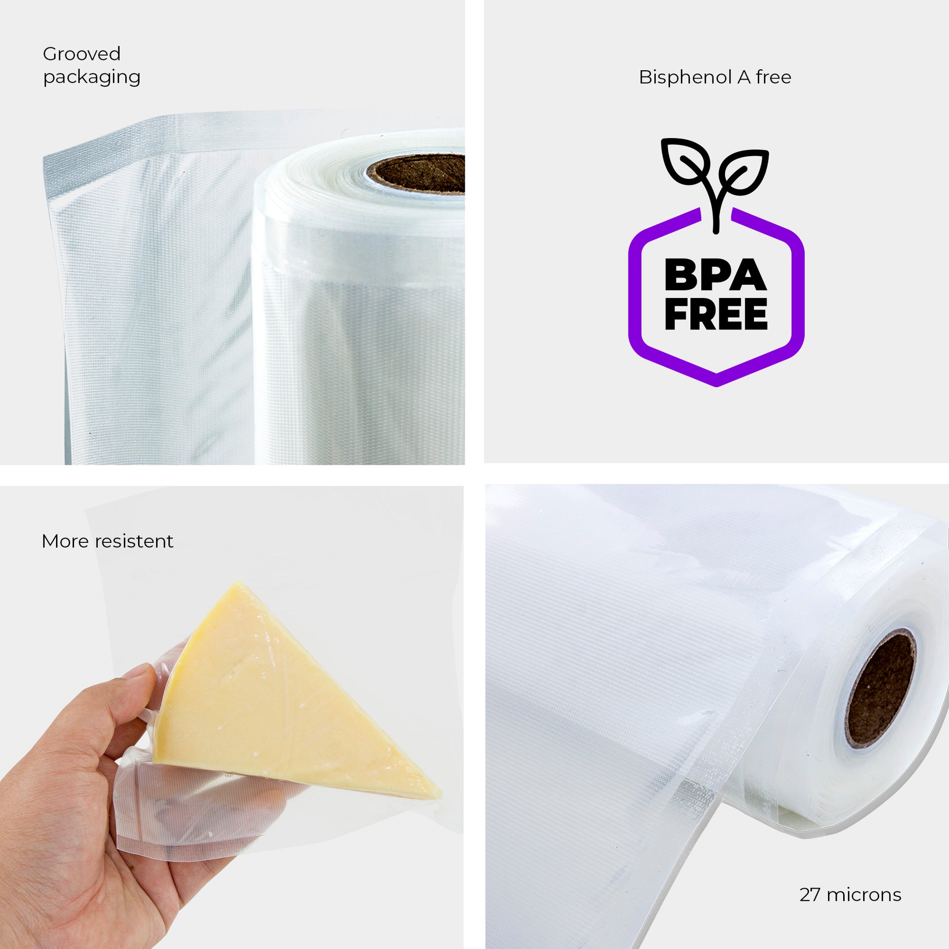 Create custom-sized bags to package! Structured Vacuum Bags can be used with all vacuum sealers on the market. With these packages, you keep your food protected for much longer, increasing its shelf life and keeping all the characteristics of the food intact. You can package raw and pre-prepared foods, so you save money and avoid waste!
