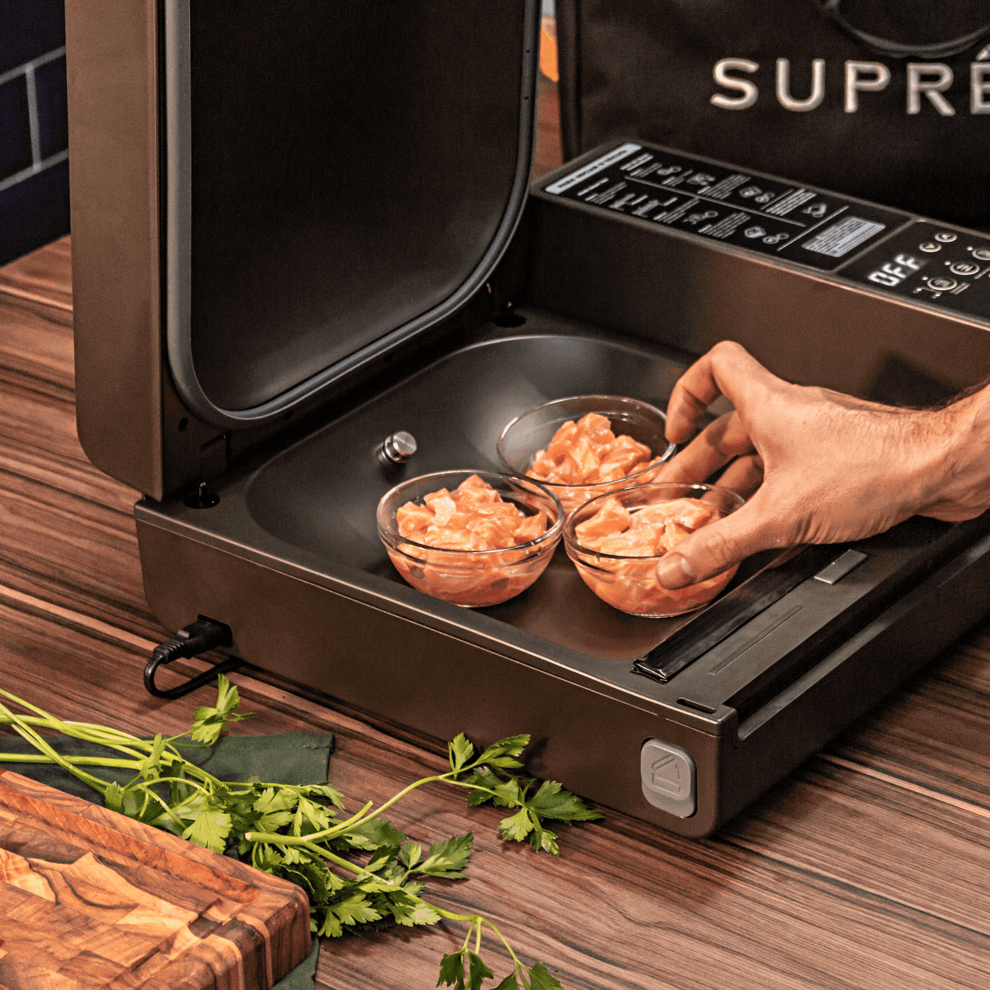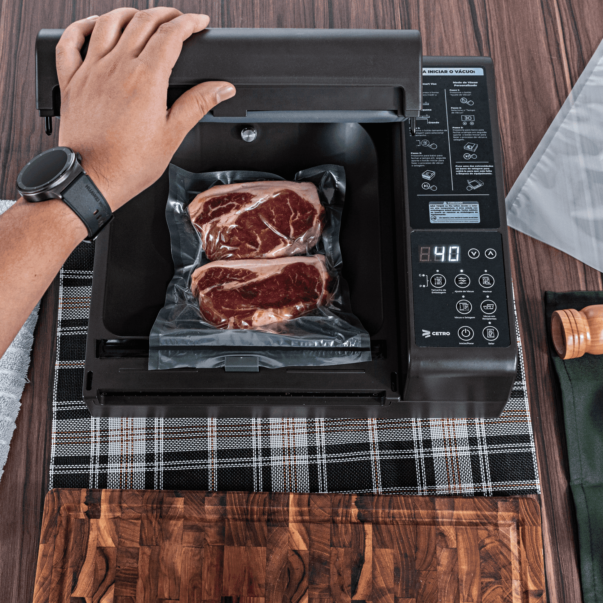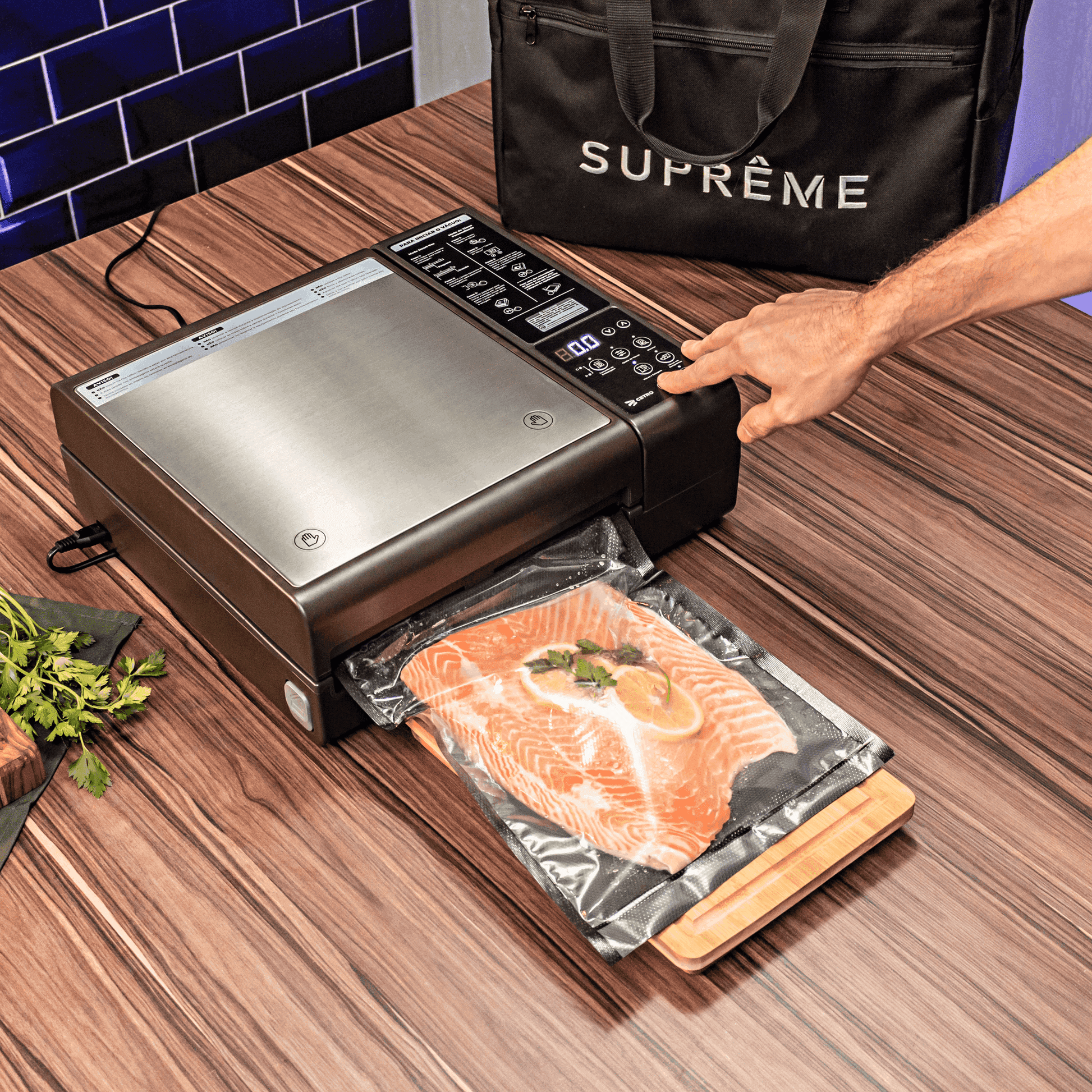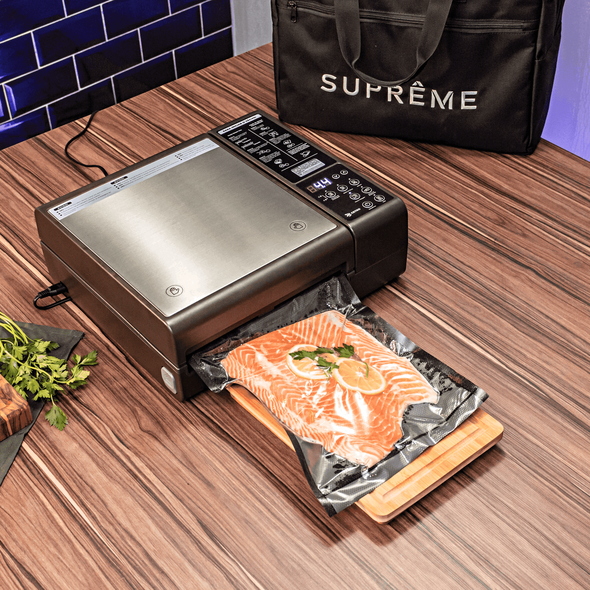 Cetro Suprême Vac Joy Chamber Vacuum Sealer comes with an exclusive carrying case and is perfect for small commercial and domestic productions. Increase the value of your products with sophisticated packaging or organize your kitchen practically and easily.