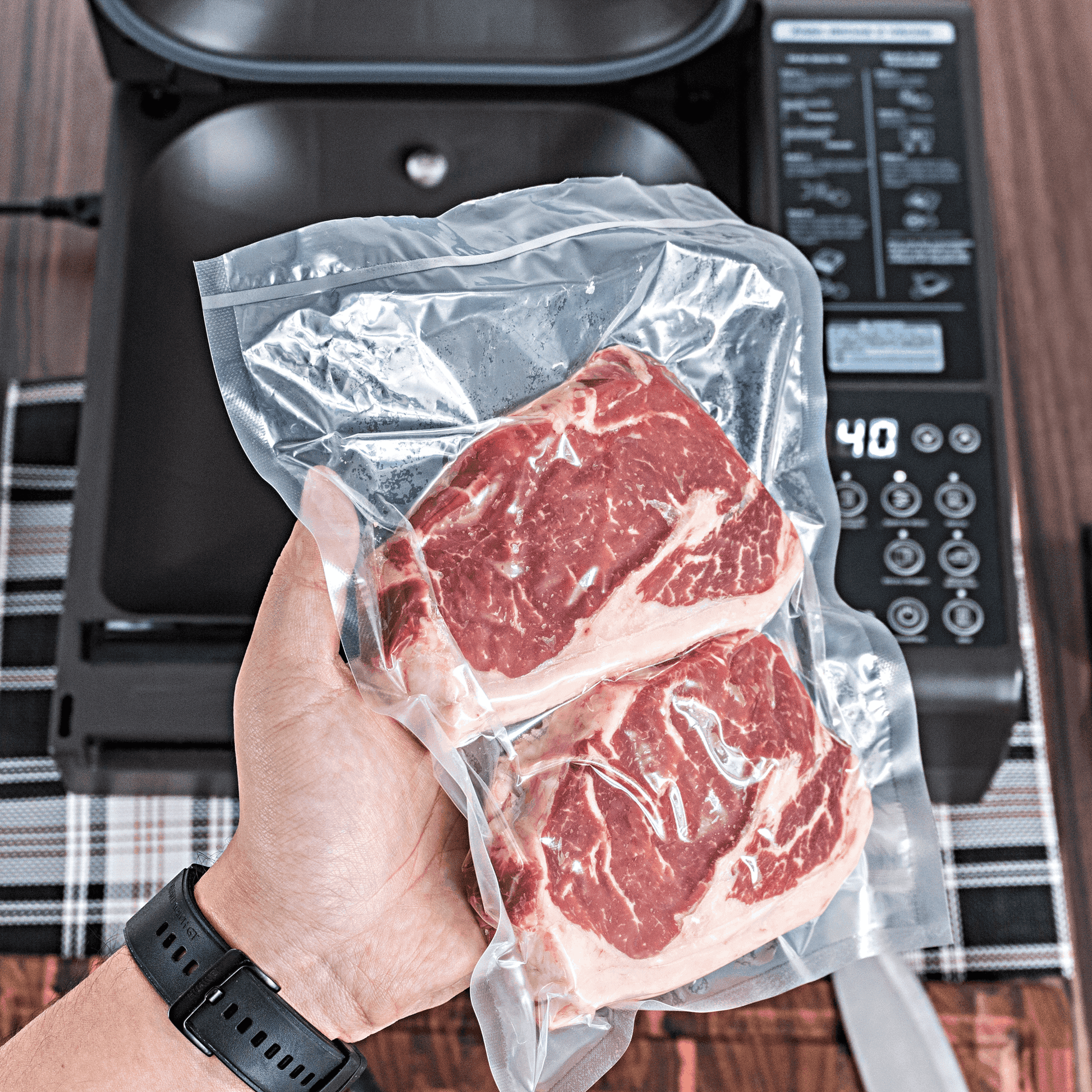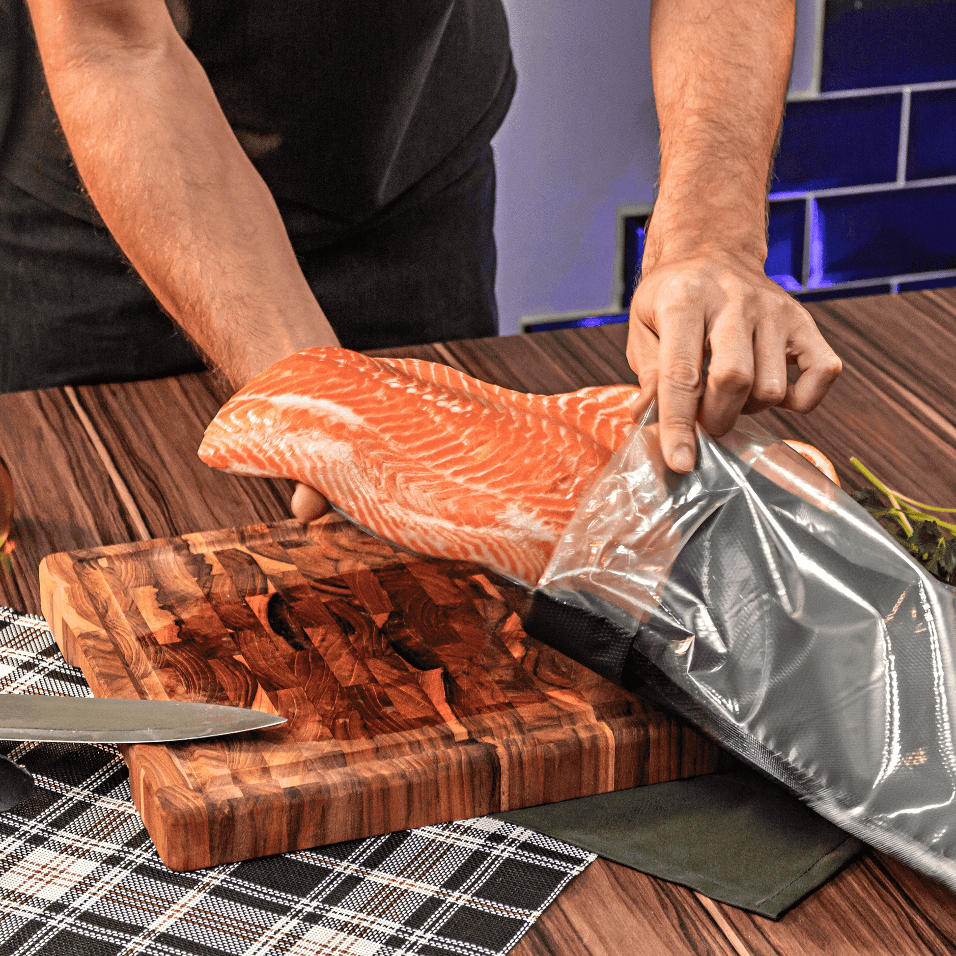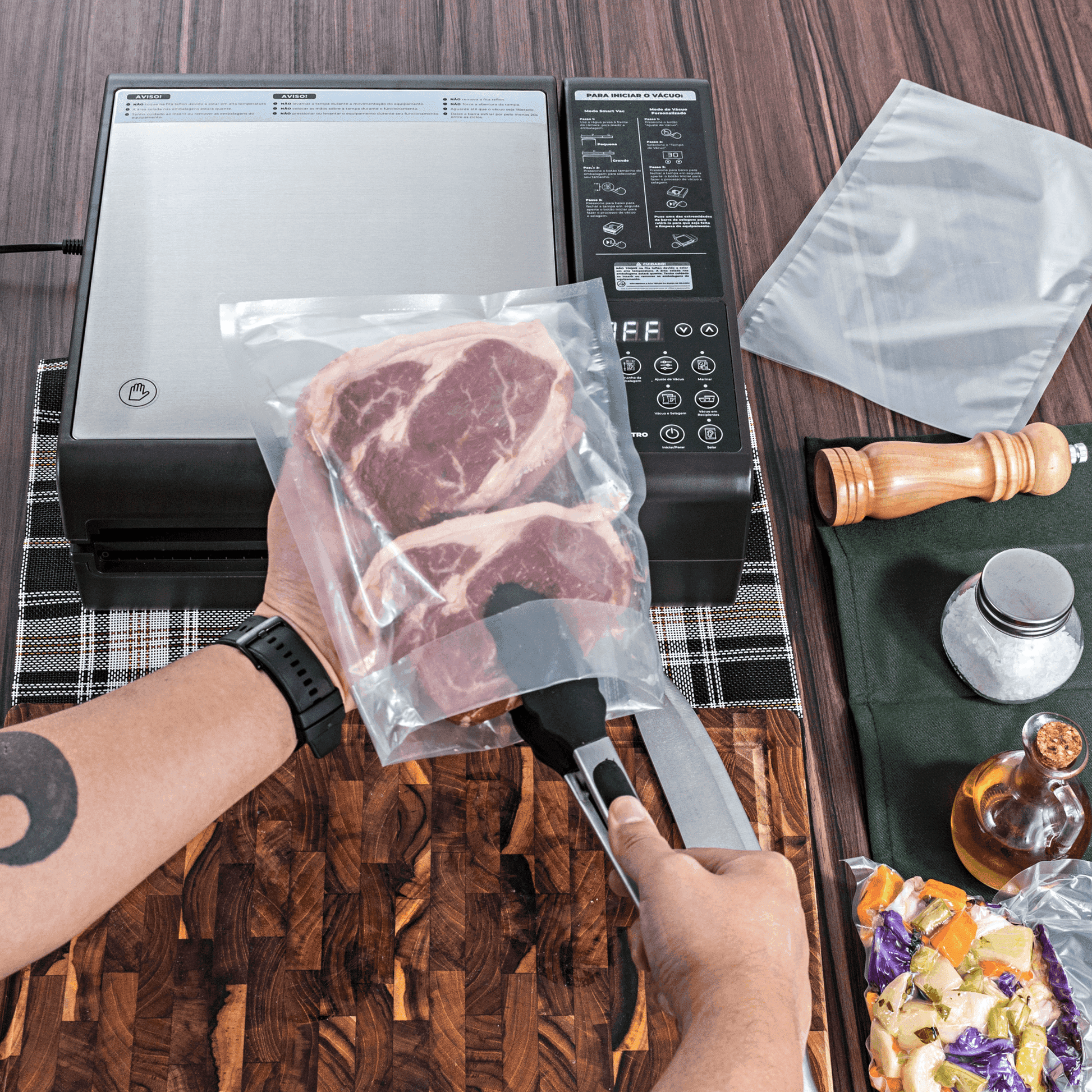 Use flat or structured bags in the same Sealer. It is possible to vacuum flat bags inside the chamber and vacuum seal structured bags outside the chamber.