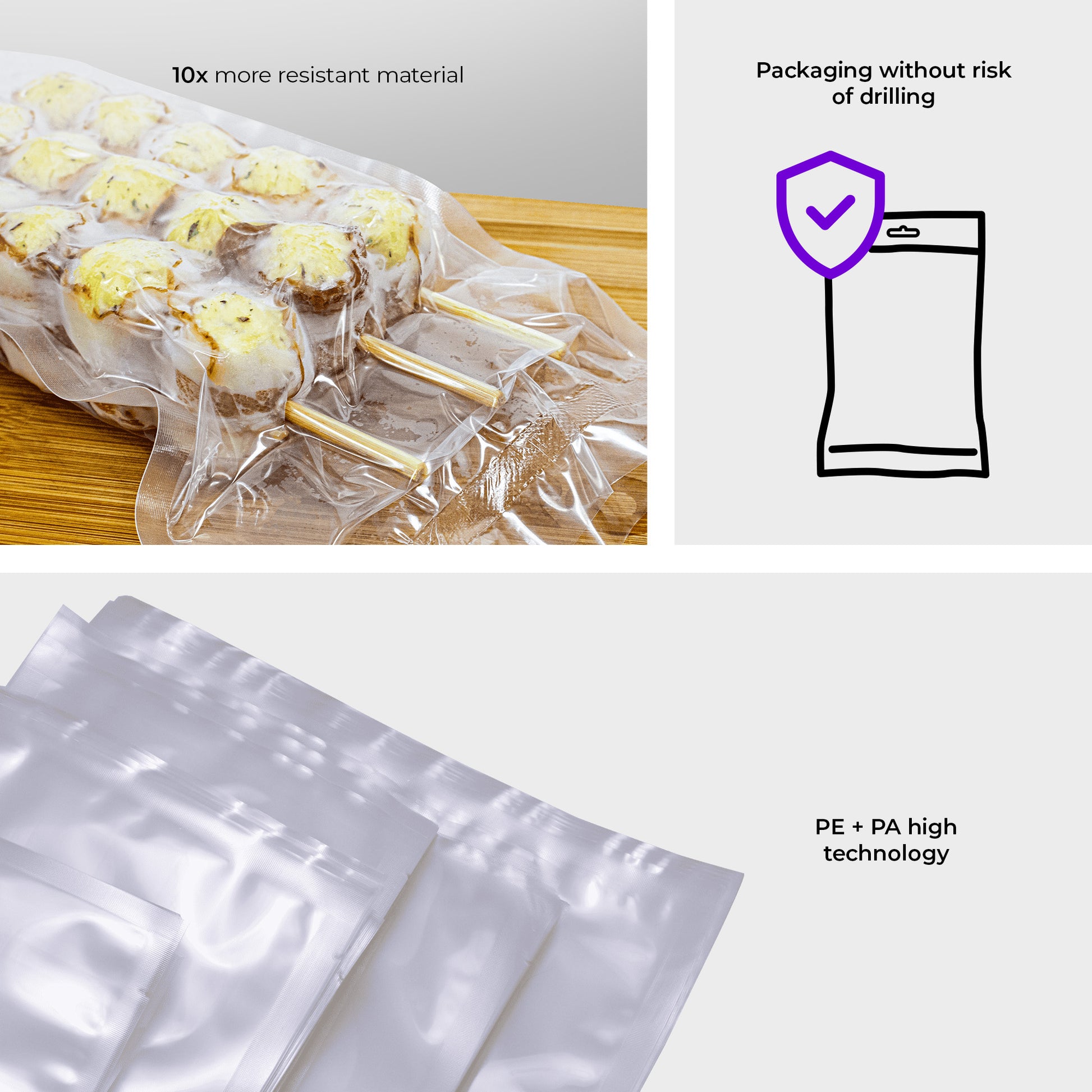 VacShield is made of high-tech PE + PA, and its material is 10x more resistant than other vacuum packaging, guaranteeing packaging without the risk of perforation and increasing the shelf life of products.