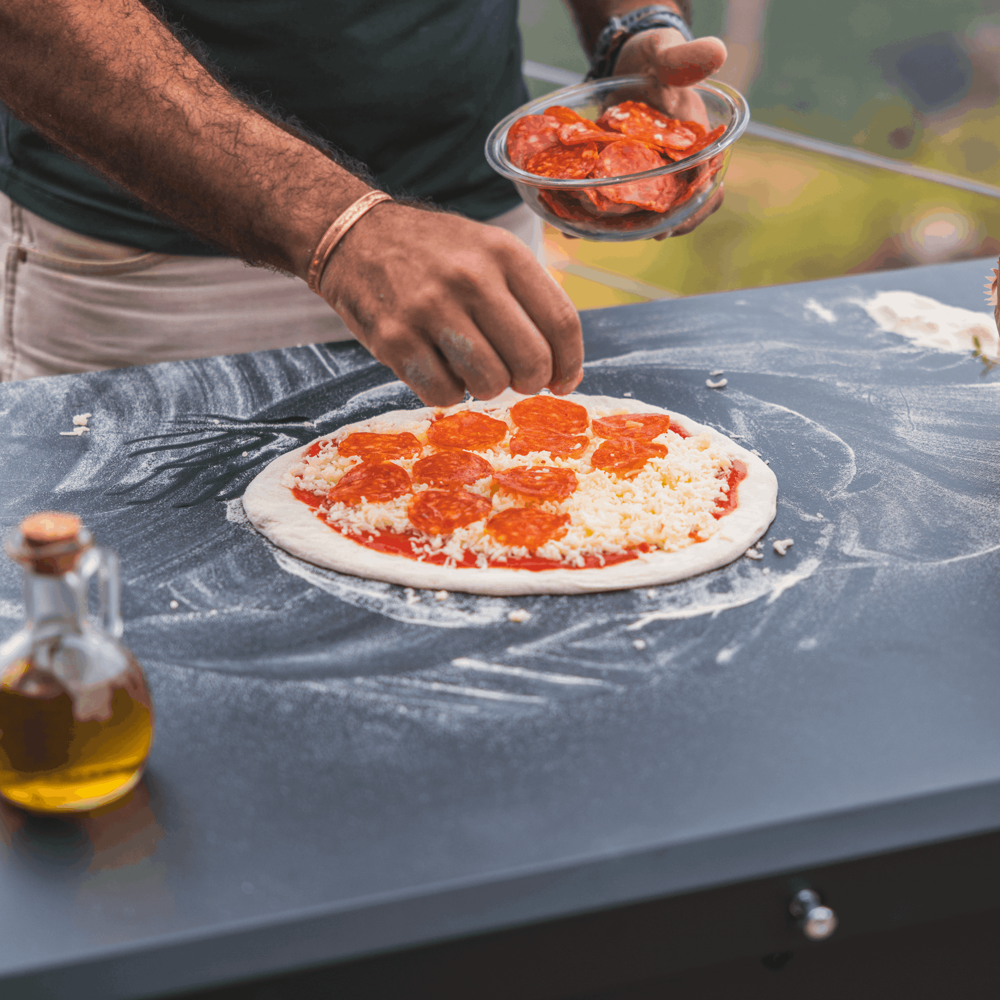 This practice contributes to more even cooking over the entire surface of the refractory stone.