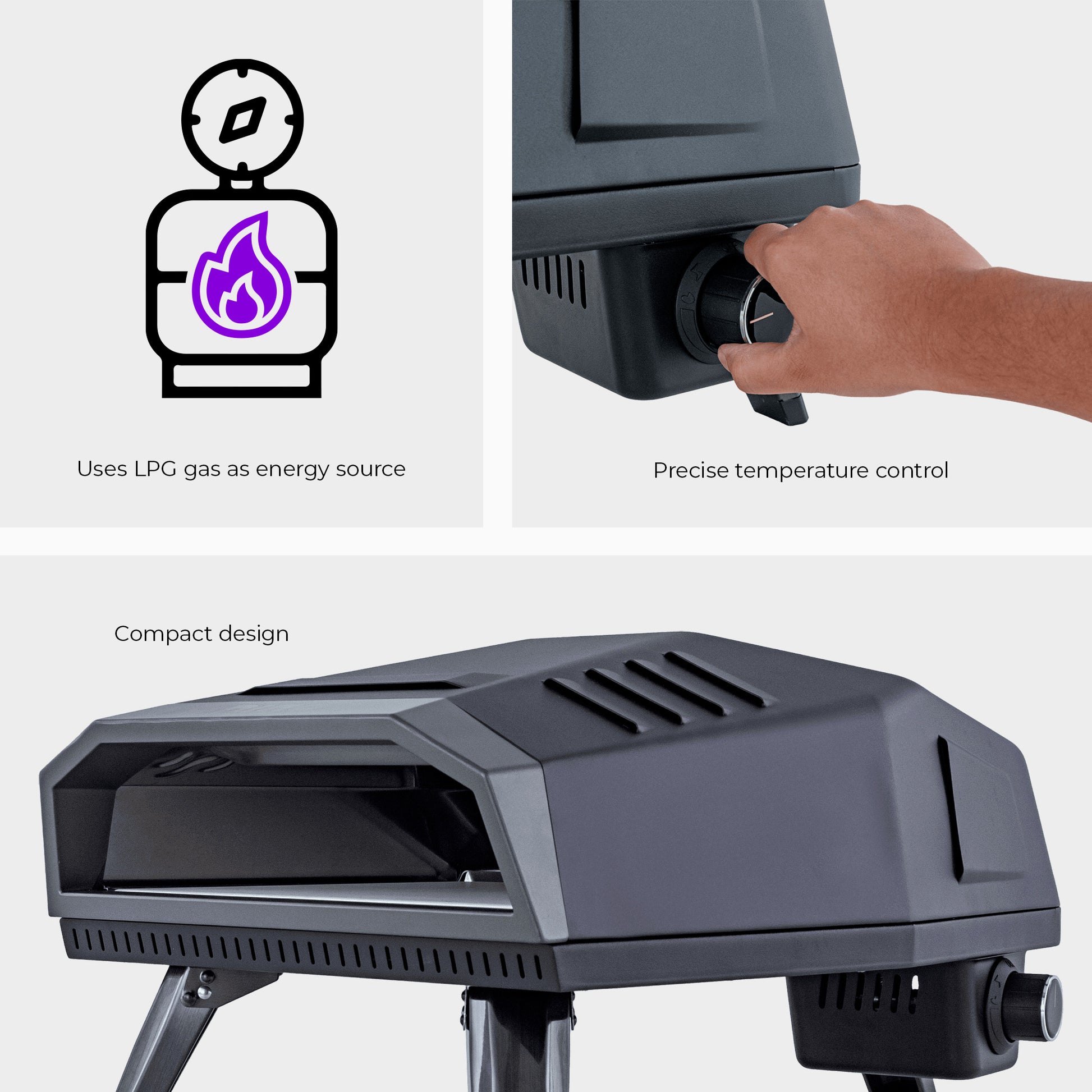 The Nino Pizza Oven model provides accurate temperature control. With a few simple adjustments, you can ensure that your pizza is baked exactly how you want it, whether with a crispy base or lightly browned cheese. Furthermore, it can reach a maximum temperature of 526 degrees Celsius.
