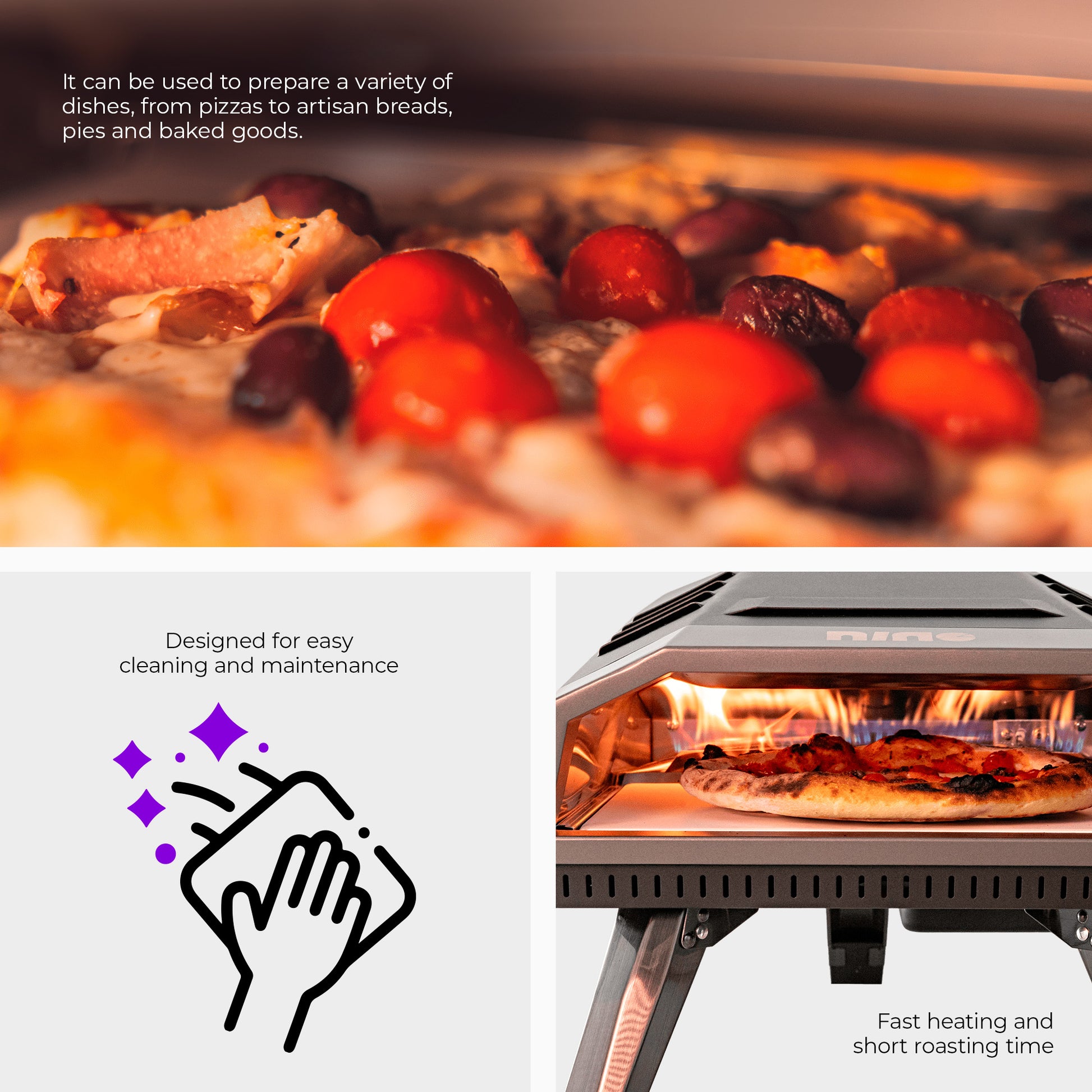 With retractable feet, you can easily transport your Nino Oven and use it in your leisure area or inside your kitchen. Despite its small size, this oven is extremely efficient, ensuring fast and consistent cooking.