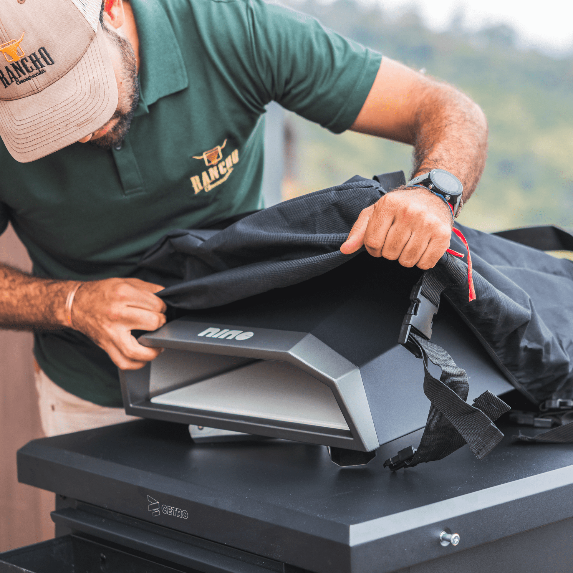 With a sophisticated design, this Cover features adjustable fasteners that guarantee a secure and personalized fit for your Nino Pizza Oven. It also has reinforced handles to make it easy to carry, and the Cover can be removed when necessary, making it ideal for use in any environment.